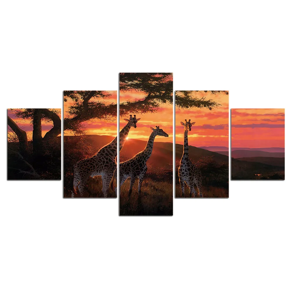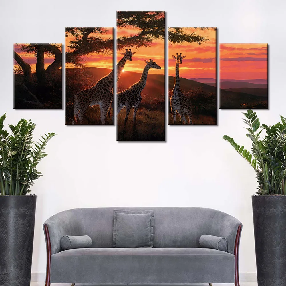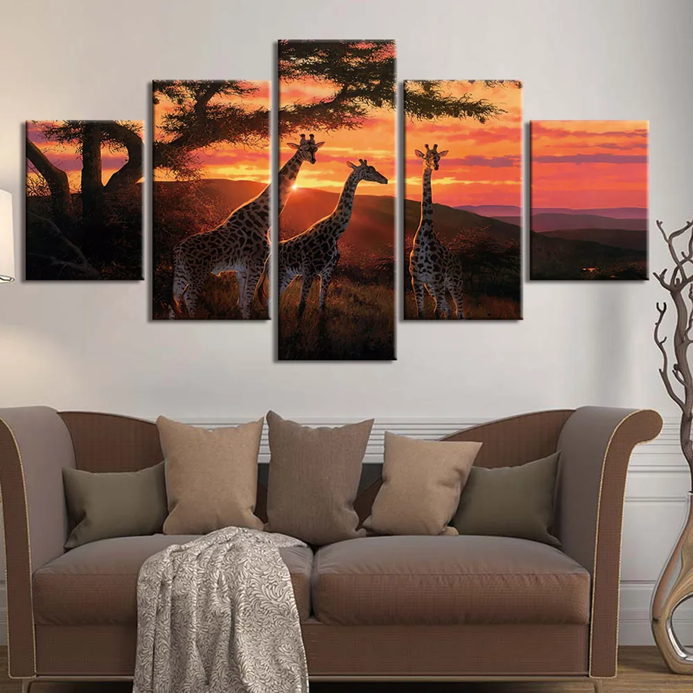 5 шт., настенные картины с изображением жирафа и пейзажа