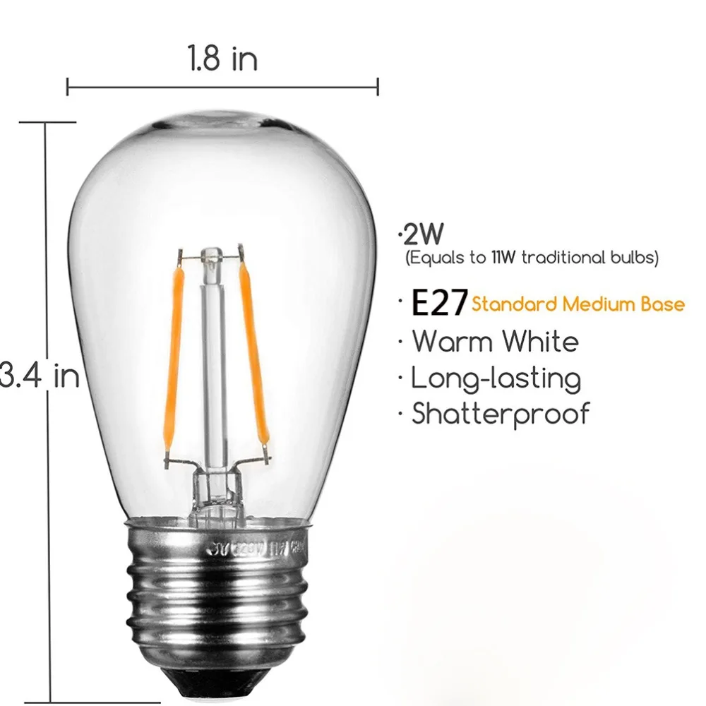 Светодиодные лампочки Эдисона S14, водонепроницаемая винтажная лампа накаливания E27 для улицы, коммерческого освещения, сменные шнурки, 10 шт., 2 Вт, 4 Вт