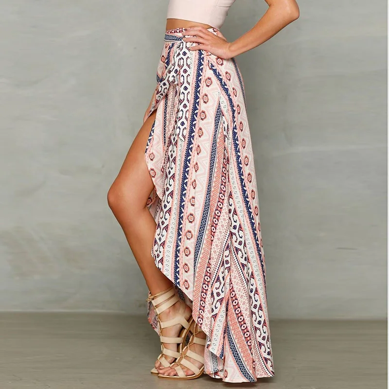 Женские богемные юбки с высокой талией, богемная Асимметричная повязка на голову, шифоновая пляжная длинная юбка макси, лето 2019