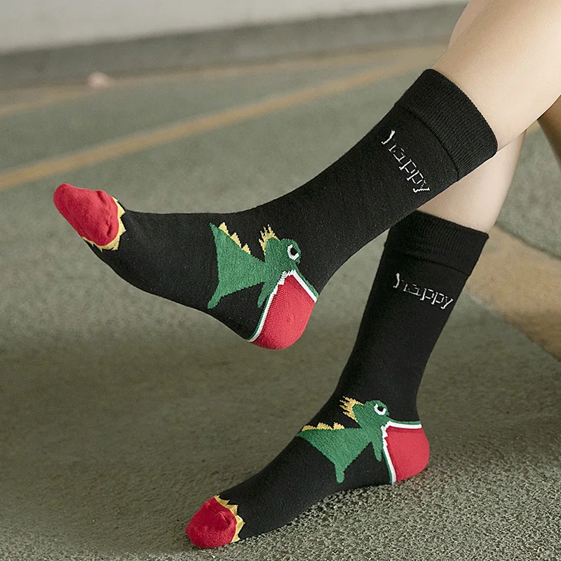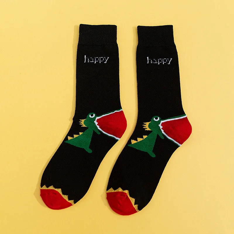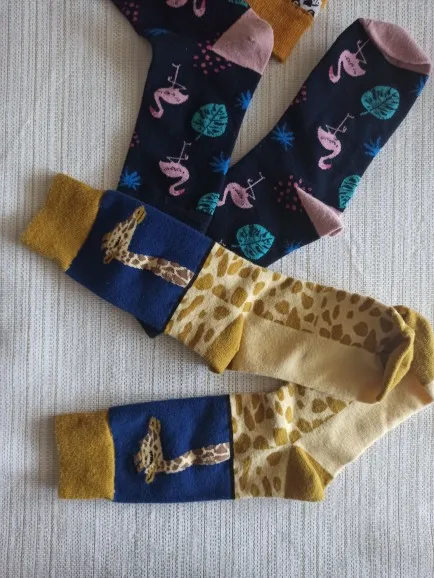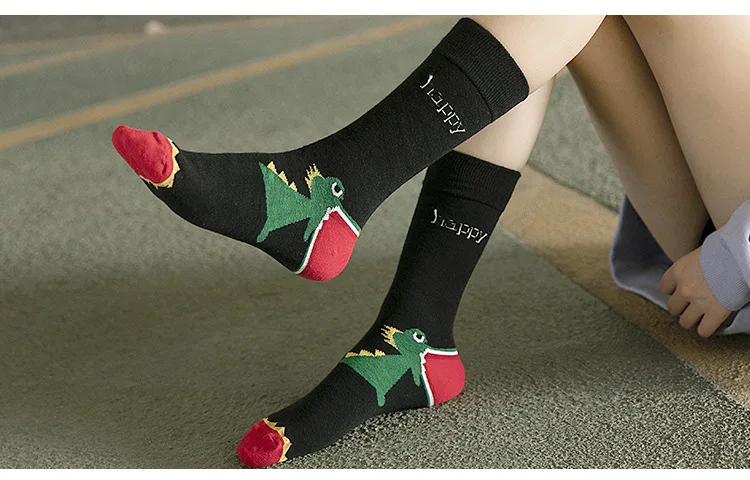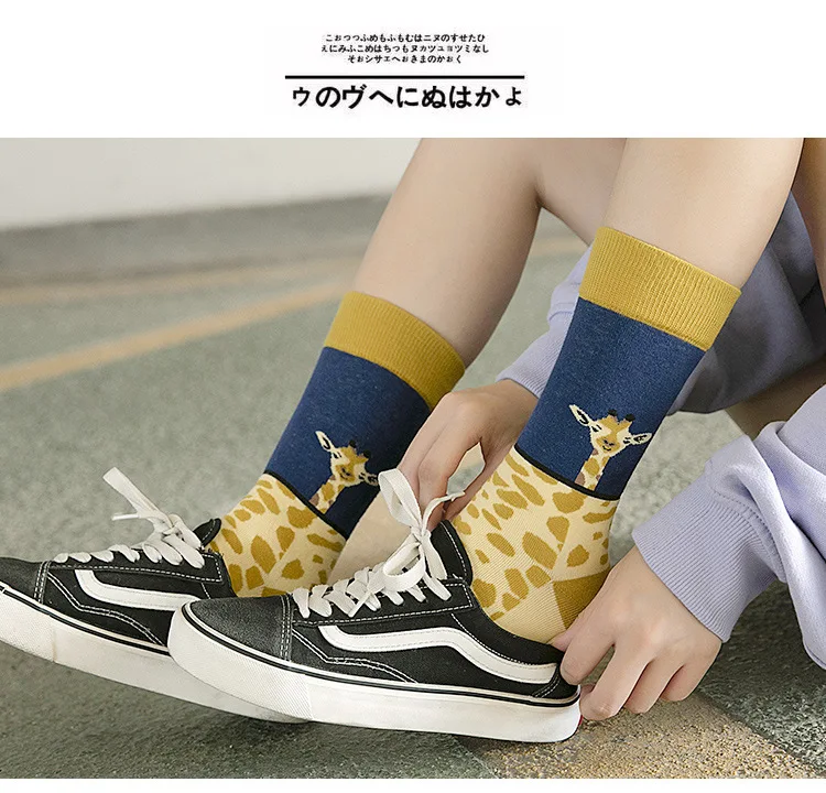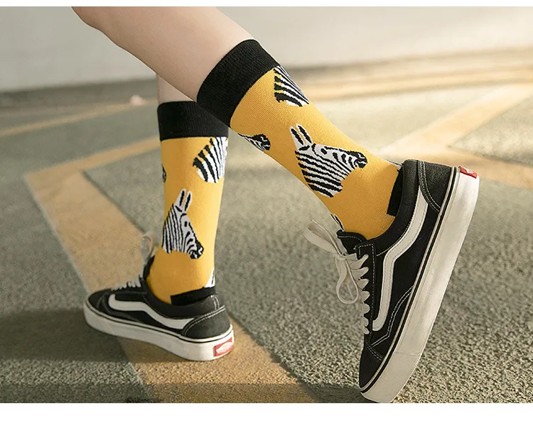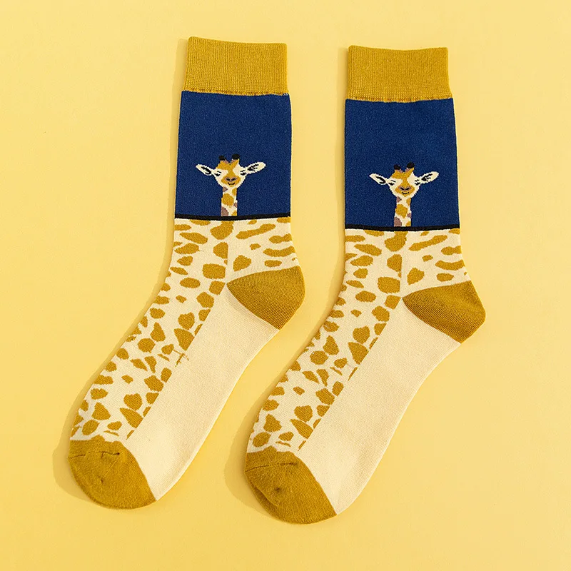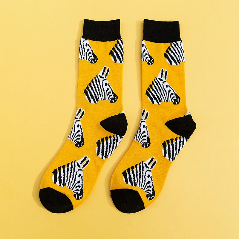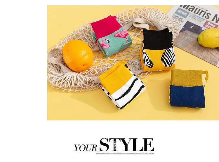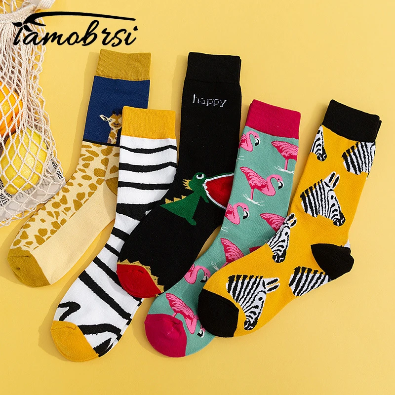 Носки хлопковые унисекс, теплые короткие носки с принтом зебры, фламинго, жирафа, динозавра, животных