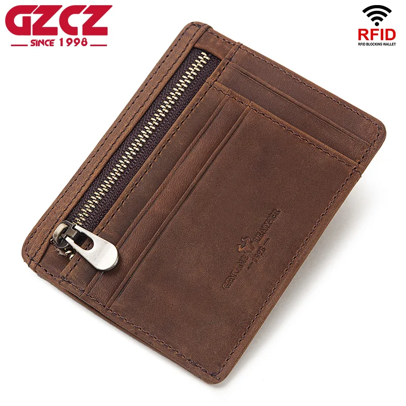 GZCZ 100% натуральная кожа, тонкий мужской держатель для кредитных карт, дизайнерский органайзер для удостоверений, мужские бумажники, кошельки, мужские кошельки, кошельки для монет