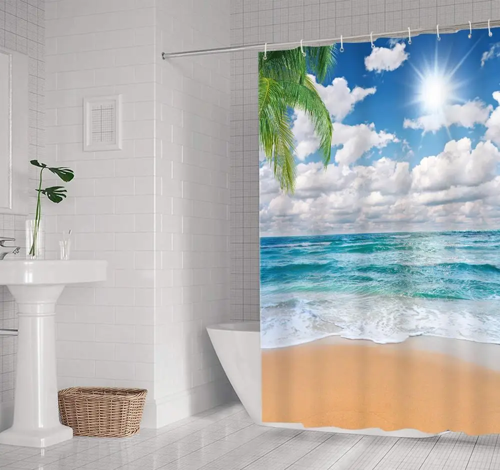 Пляжный Пейзаж раковину 3d печати Душ Шторы полиэфирная перегородка...
