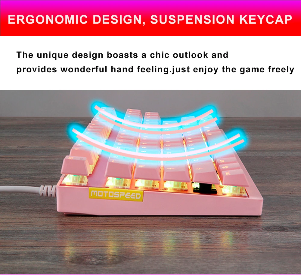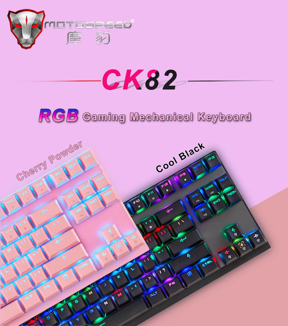 Клавиатура Motospeed CK82 игровая механическая, английскаяРусская раскладка, RGB подсветка, USB, проводная, лазерная, эргономичная