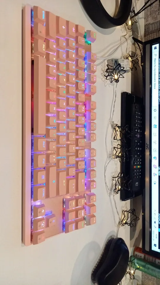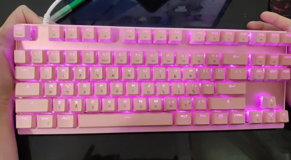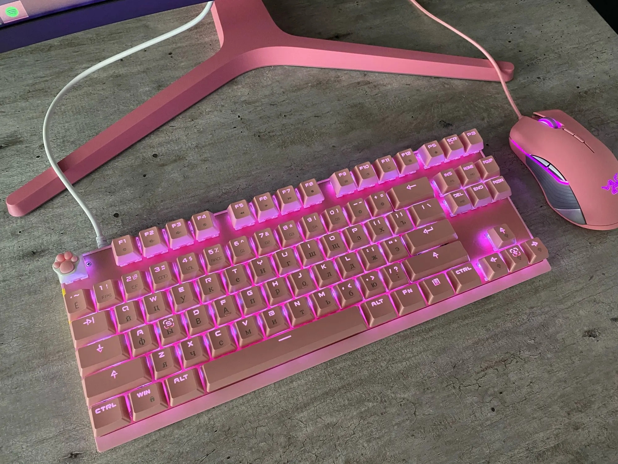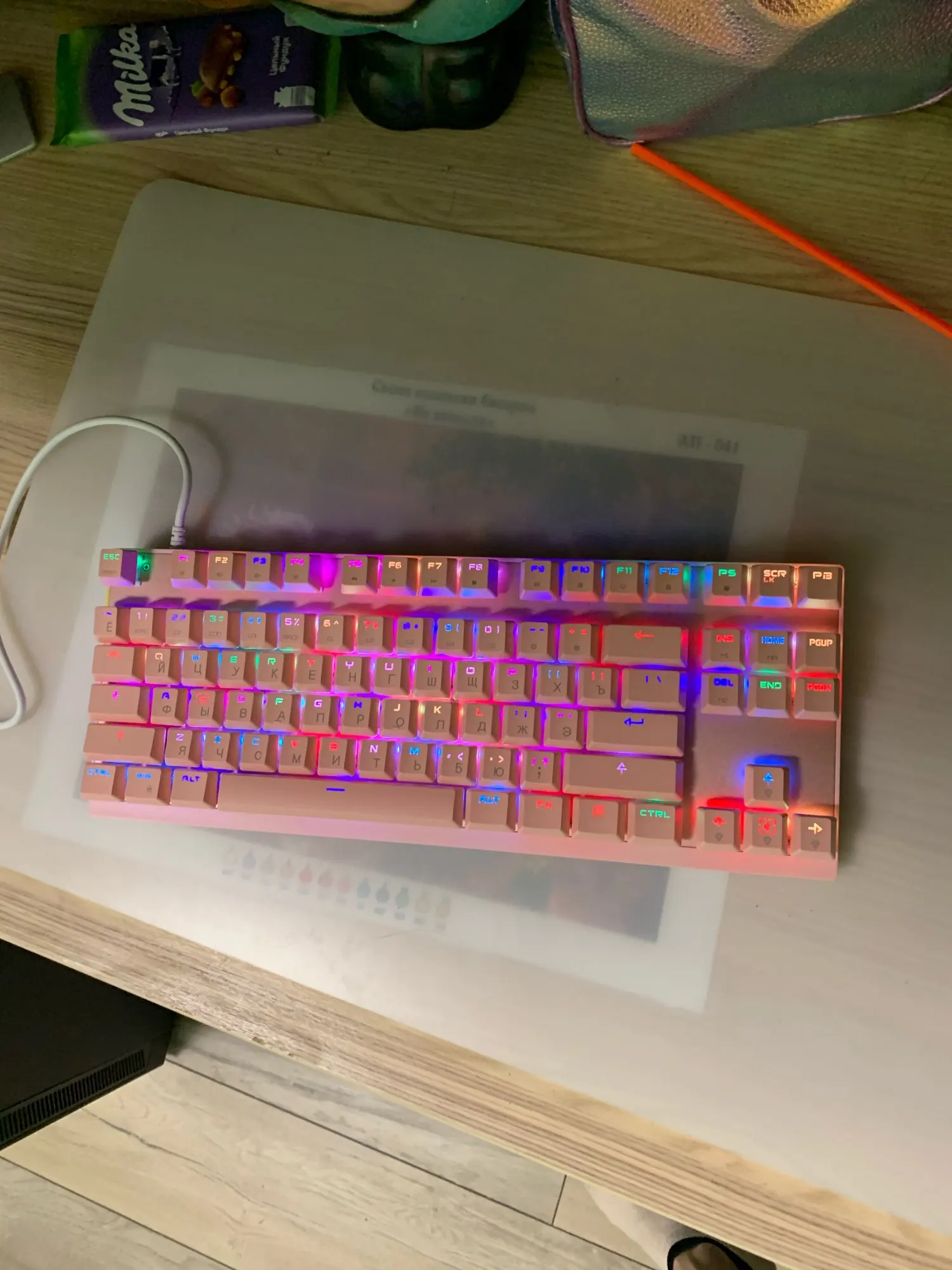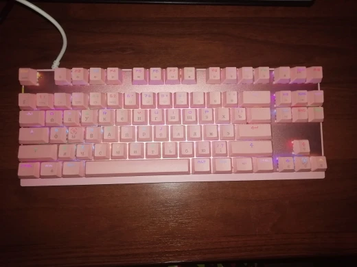 клавиатура прибыла в порядке, шла месяц я выбирала розовую с русской раскладкой о боже как я в восторге!! в первый раз меня удивил звук клавиш, но через пару минут я уже привыкла❤️ спасибо! ✨
