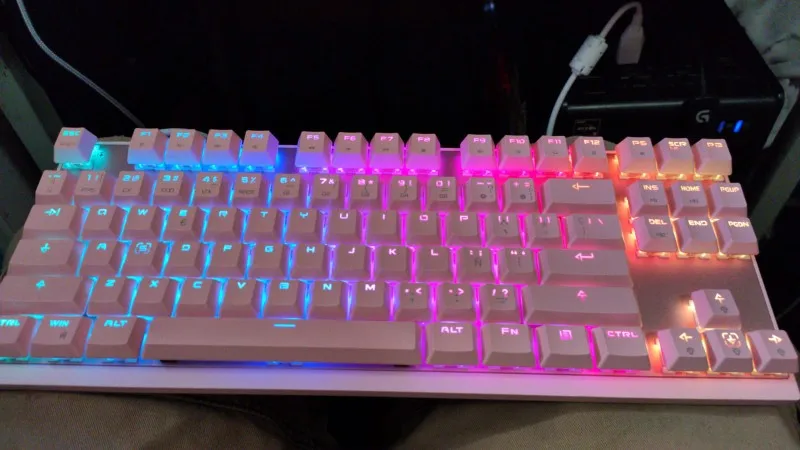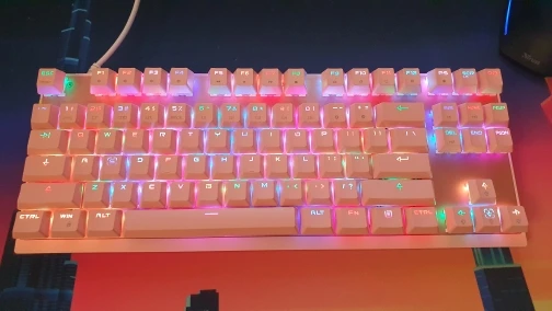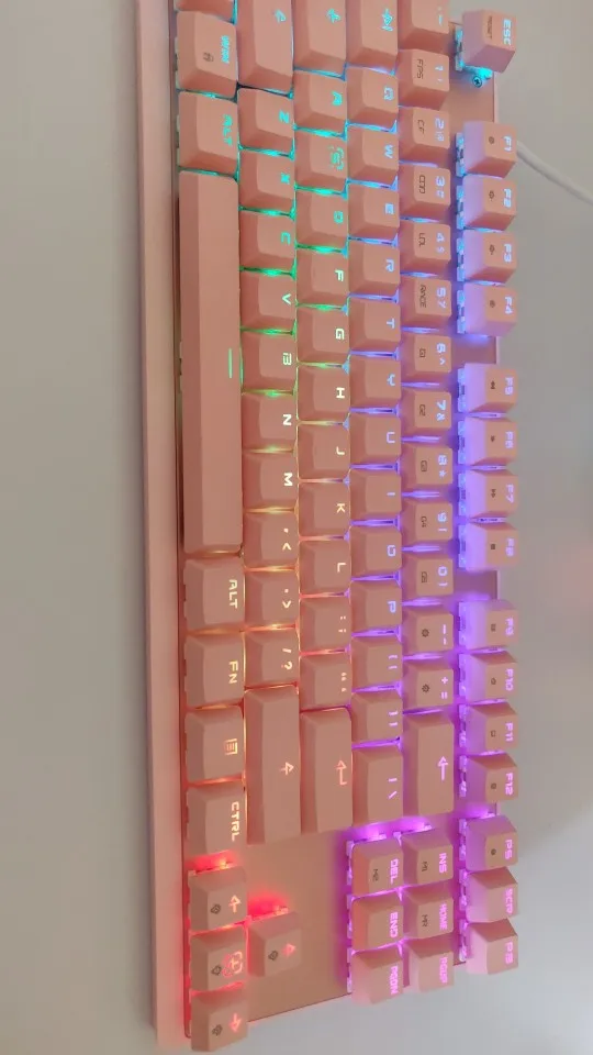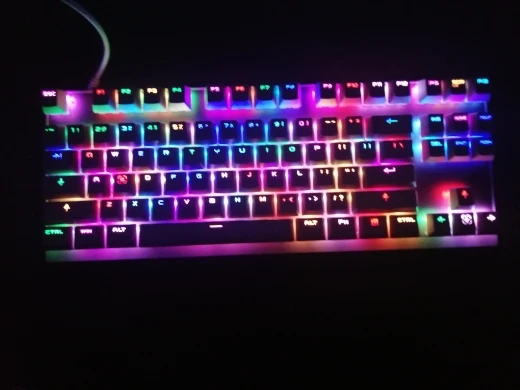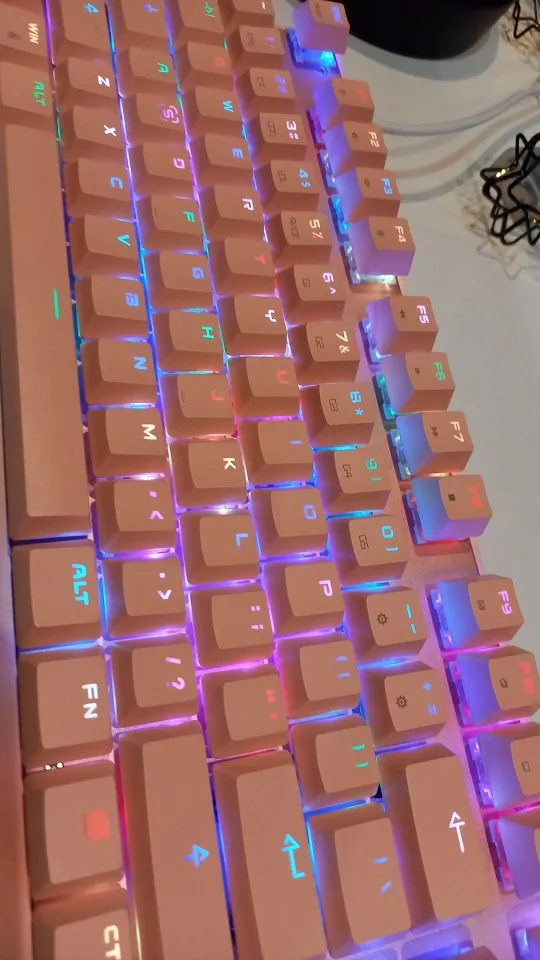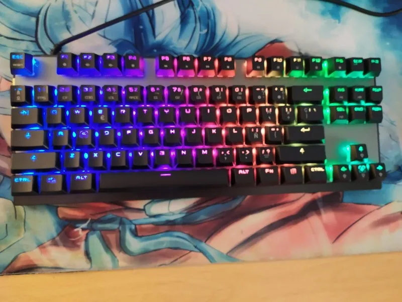 Супер красиво! The Lights Are bright. Он прибыл раньше и в отличном состоянии, я выбрал красный переключатель, и мне нравится, что он не очень шумный по сравнению с синим, но это вкус. Я также выбрал версию на испанском языке, и это супер хороший плюс!