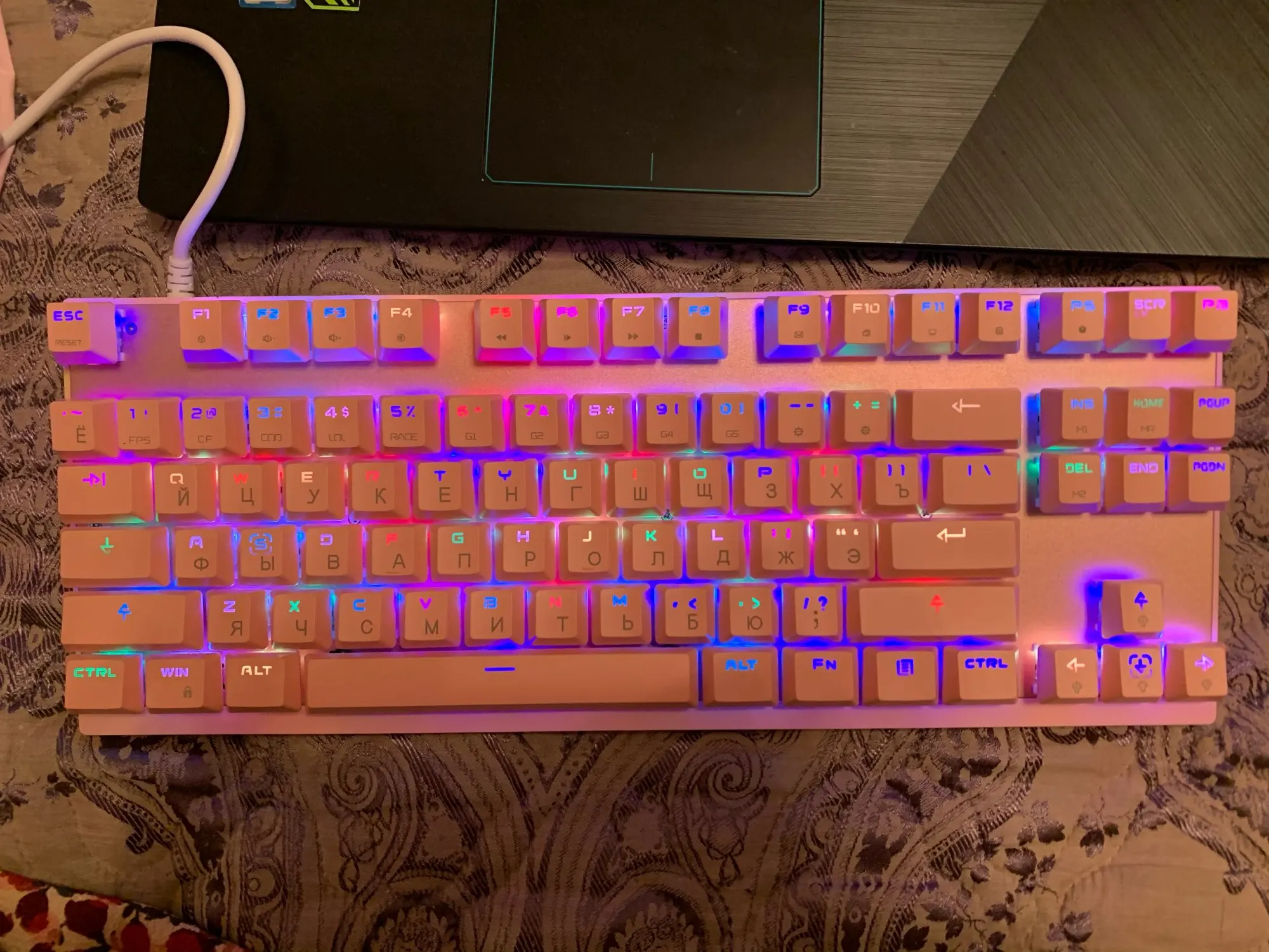 Хорошая Клава за свои деньги! Русские буквы выглядят не очень и немного люфтит, но в целом все работает. Очень много режимов подсветки на любом вкус. Минус: достаточно долго шла до Казахстана. Но тем не менее - Советую!