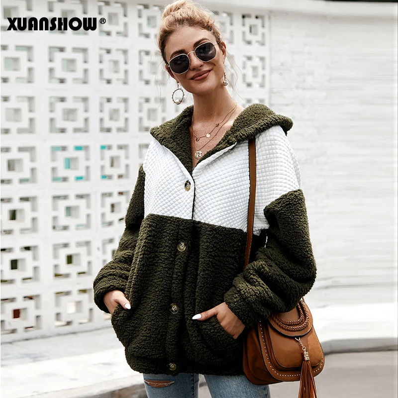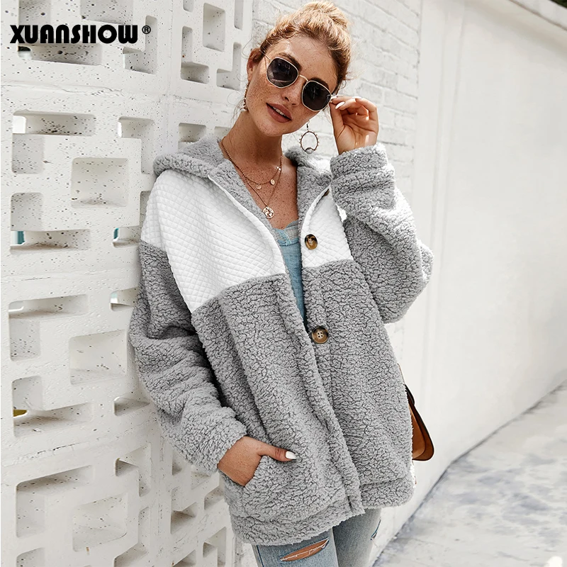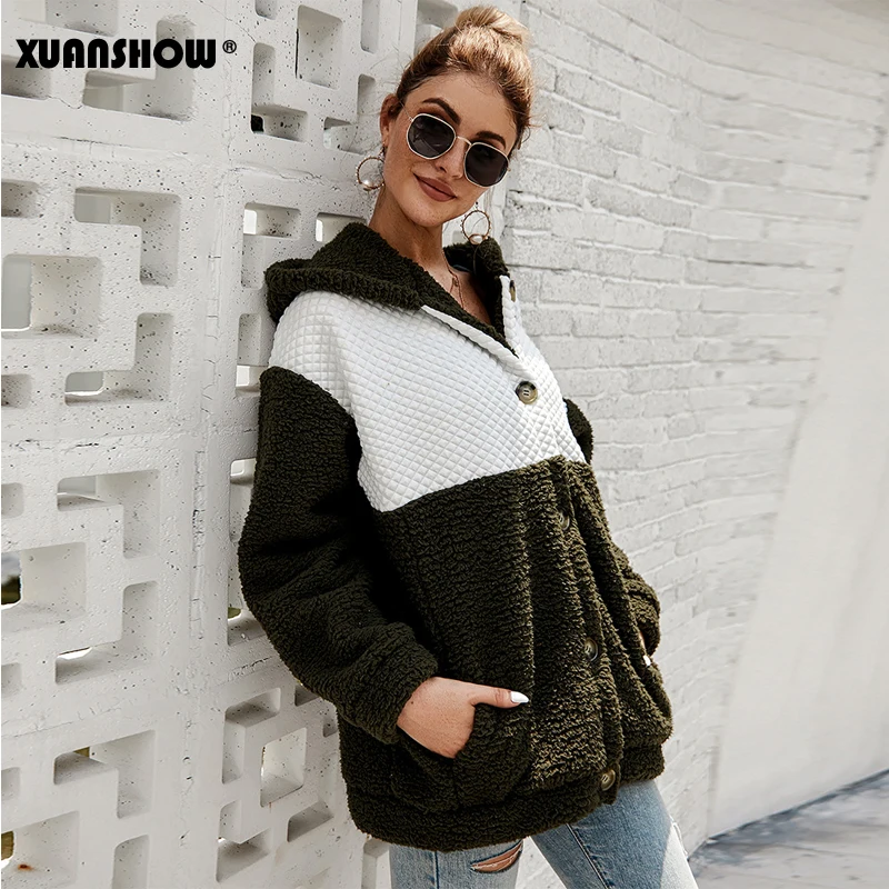 XUANSHOW 2019 зима Пальто женское закрытый пушистый рыхлый мода Длинный рукав сращивание Женский топ толстовки Хранить в теплой