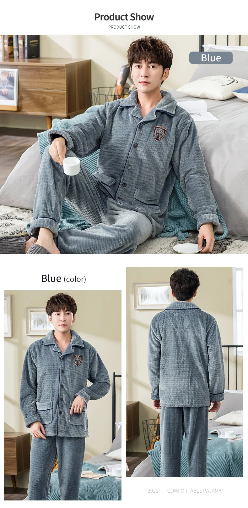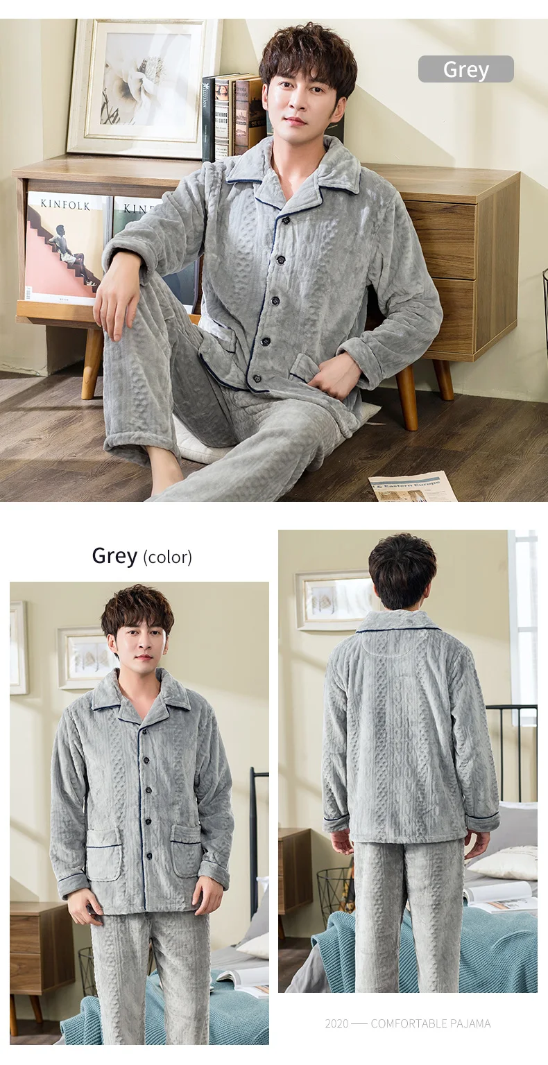 Зимняя мужская пижама из кораллового флиса, 2 шт., пижама для отдыха для мужчин, пижама, халат, домашняя одежда, PJ серая теплая утепленная Пижама, 2019
