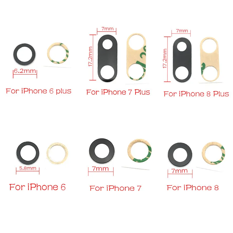 50 шт./лот, задняя камера, стеклянный объектив для Iphone 6 7 8 Plus X XR XS Max 11 12 Pro Max 12, мини-стекло для камеры с клеем