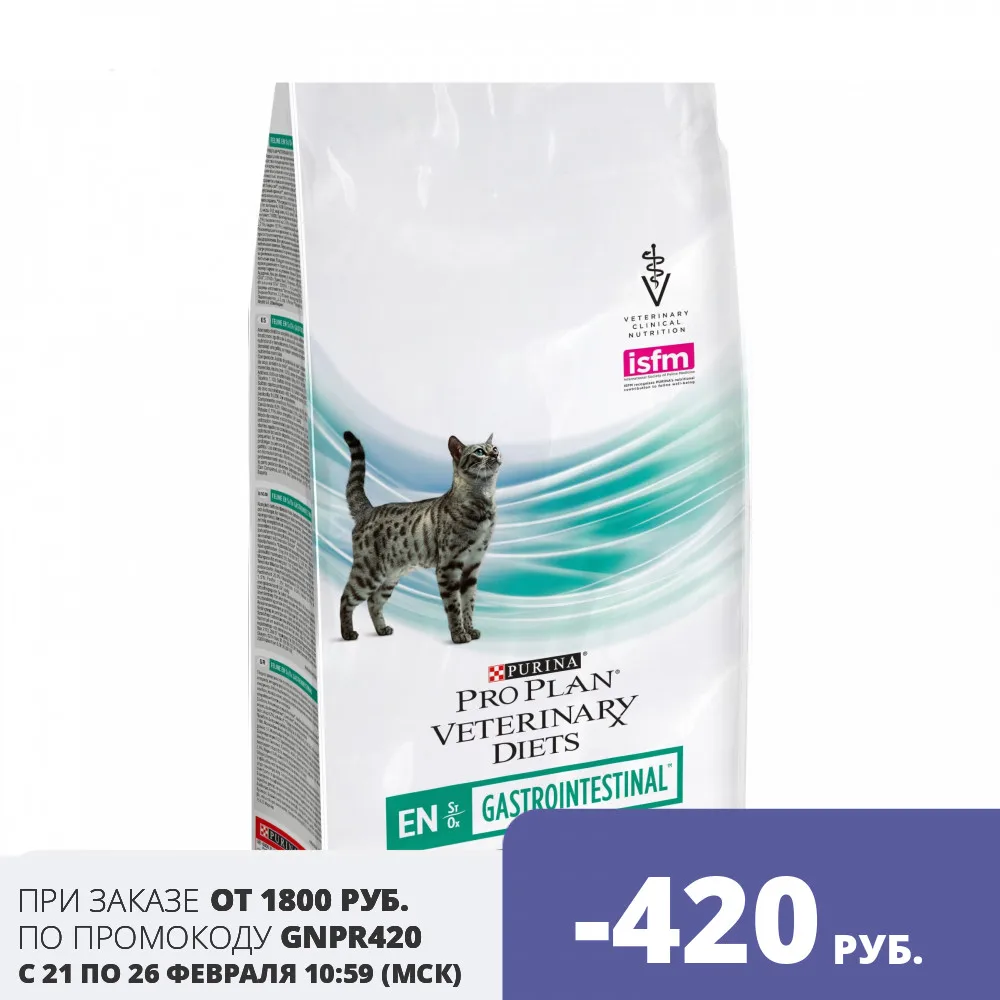 Purina® Pro Plan® Veterinary diets® EN Корм сухой полнорационный диетический для котят и взрослых кошек при расстройствах пищеварения. Корм рекомендуется для уменьшения проявлений острых нарушений кишечного всасывания, способствующий восстановлению функции всасывания и выздоровлению.