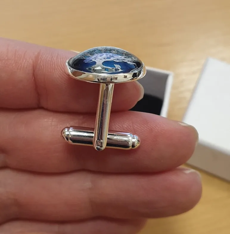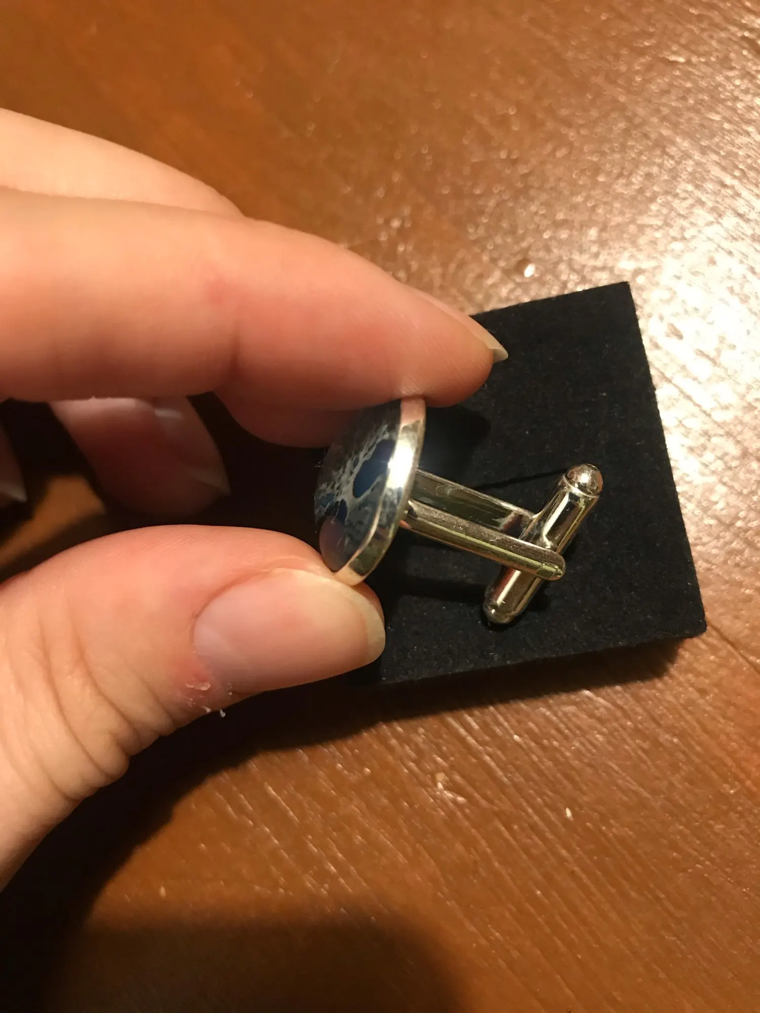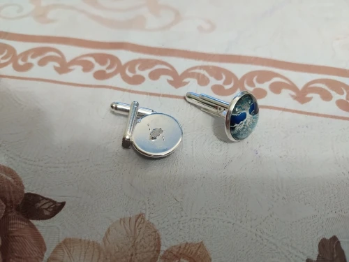 Товар не совсем соответствует описанию, в жизни картинка у запонок не совсем четкая. Плюс картинку приклеивали к фурнитуре не очень аккуратно, и картинка и сама фурнитура запонок вся в белом налёте ( предполагаю что это клей). Товар на троечку. За цену в сто рублей большего не ожидала.