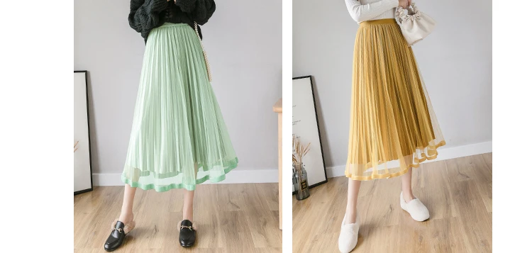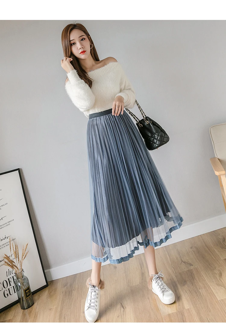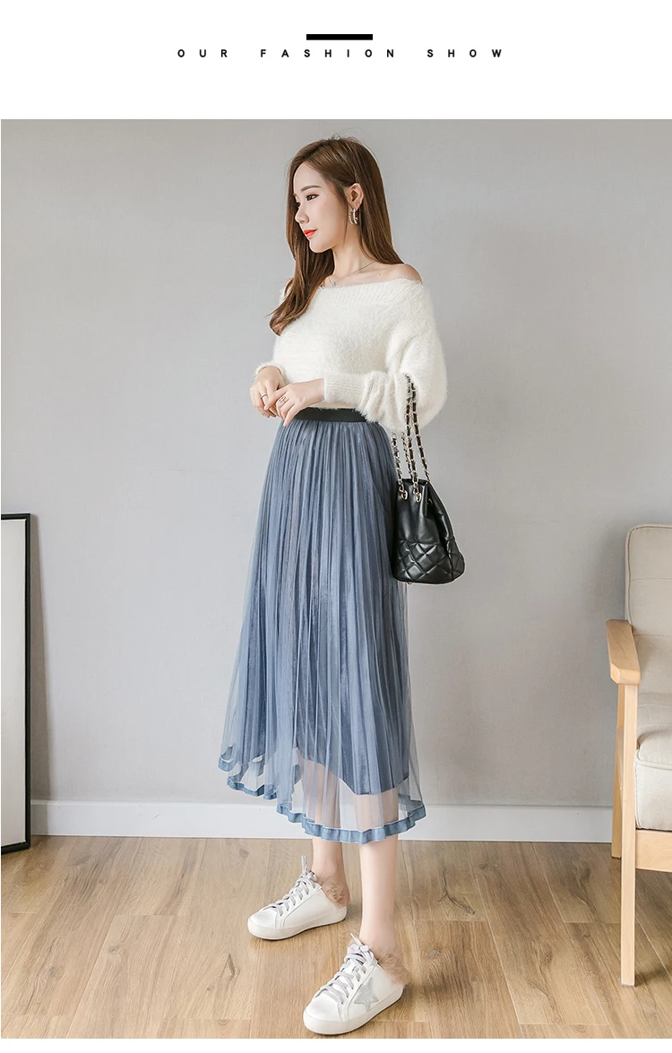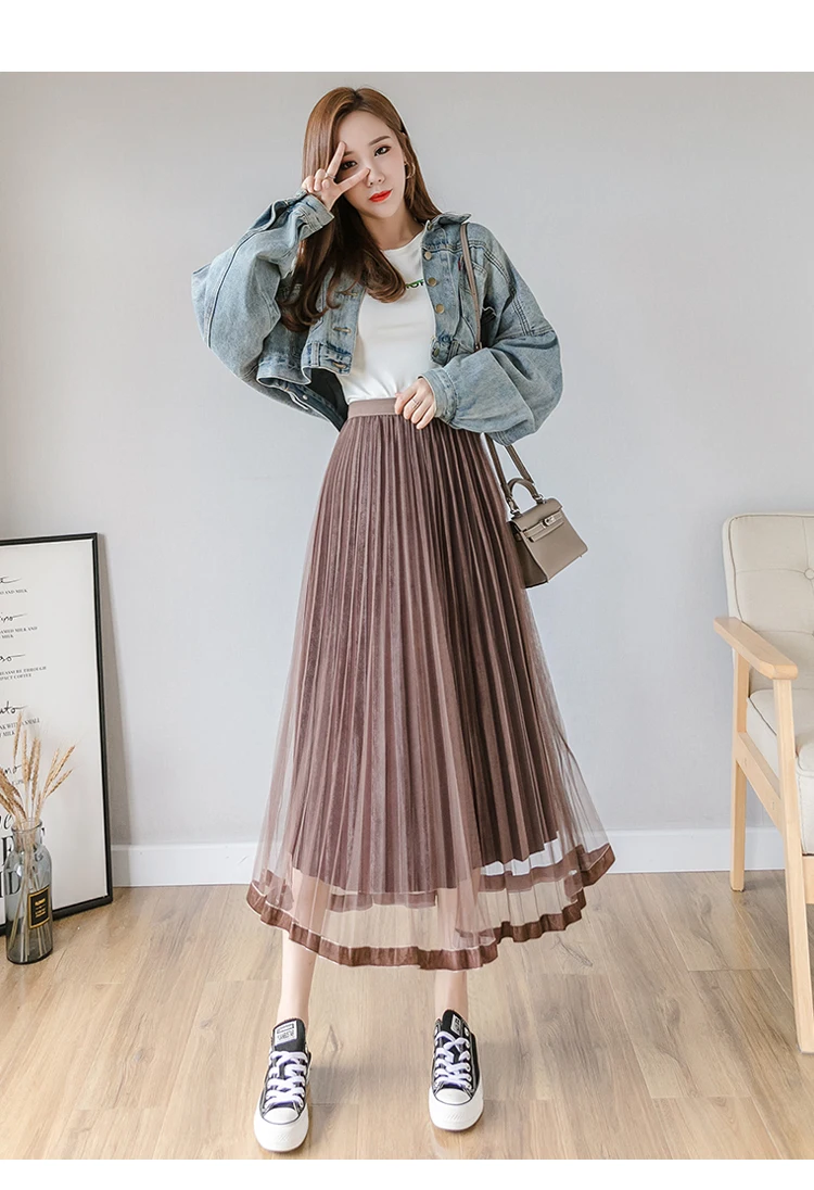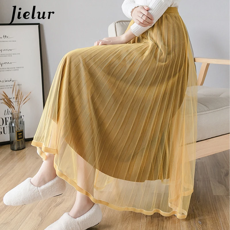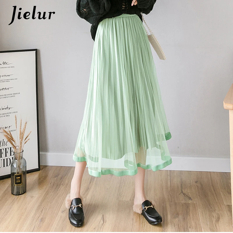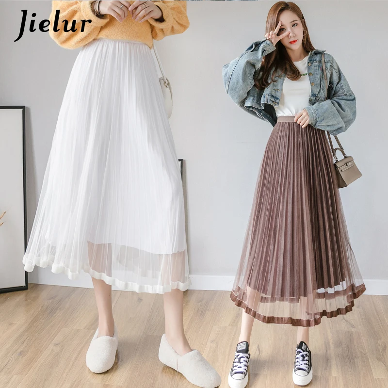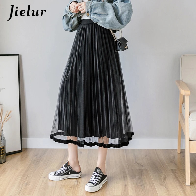 Jielur новые сетчатые женские юбки 7 цветов элегантные женские свободные плиссированные юбки 2019 модные милые велюровые корейск