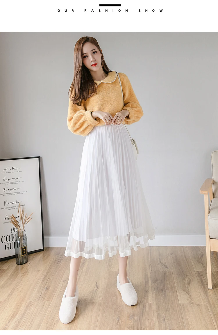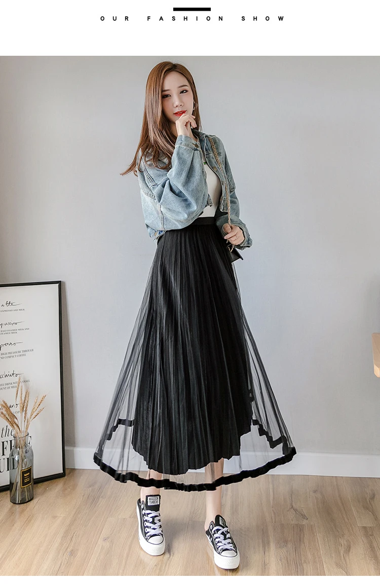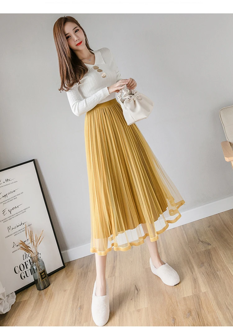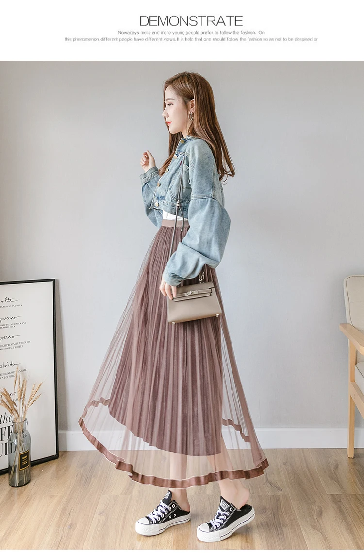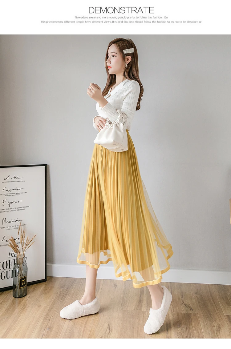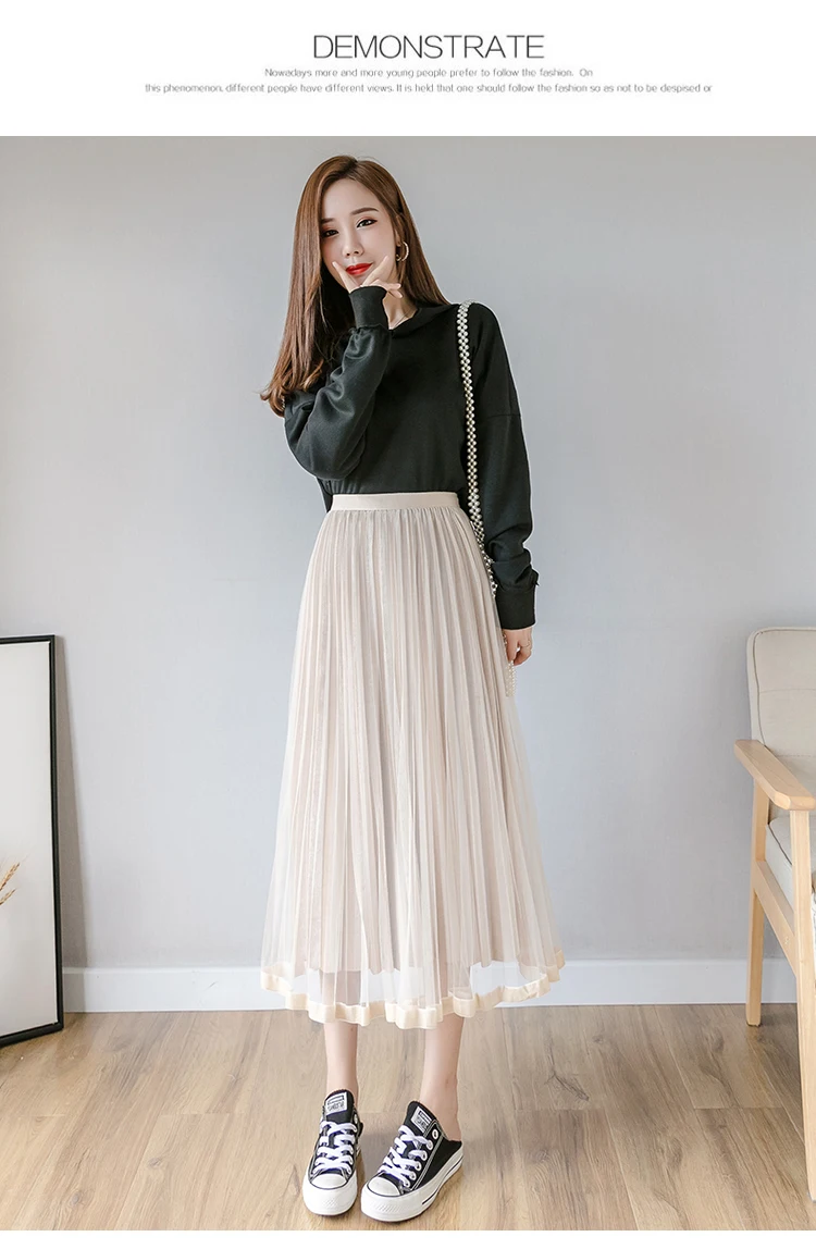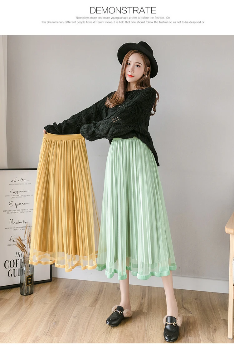 Jielur новые сетчатые женские юбки 7 цветов элегантные женские свободные плиссированные юбки 2019 модные милые велюровые корейск