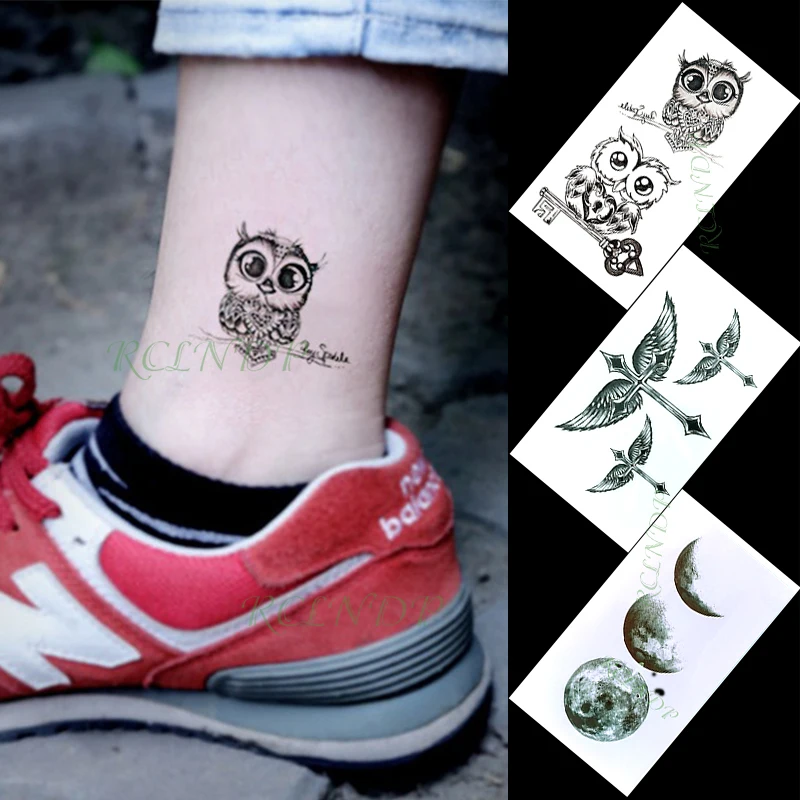 Водостойкая Временная тату-наклейка, Сова, крылья, крест, Луна, пла...
