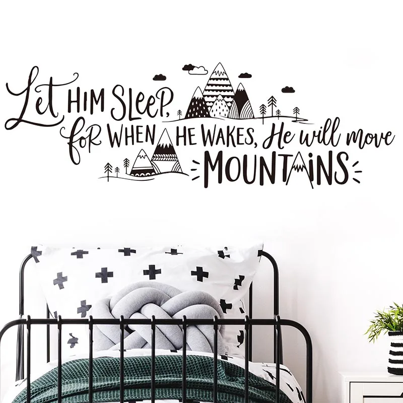 * 1 НаборПусть он спит, когда проснется, он будет двигать горы, Настенная Наклейка для мальчика комната, детская комната, сладкая мечта, холм, цитата, наклейка на стену, спальня