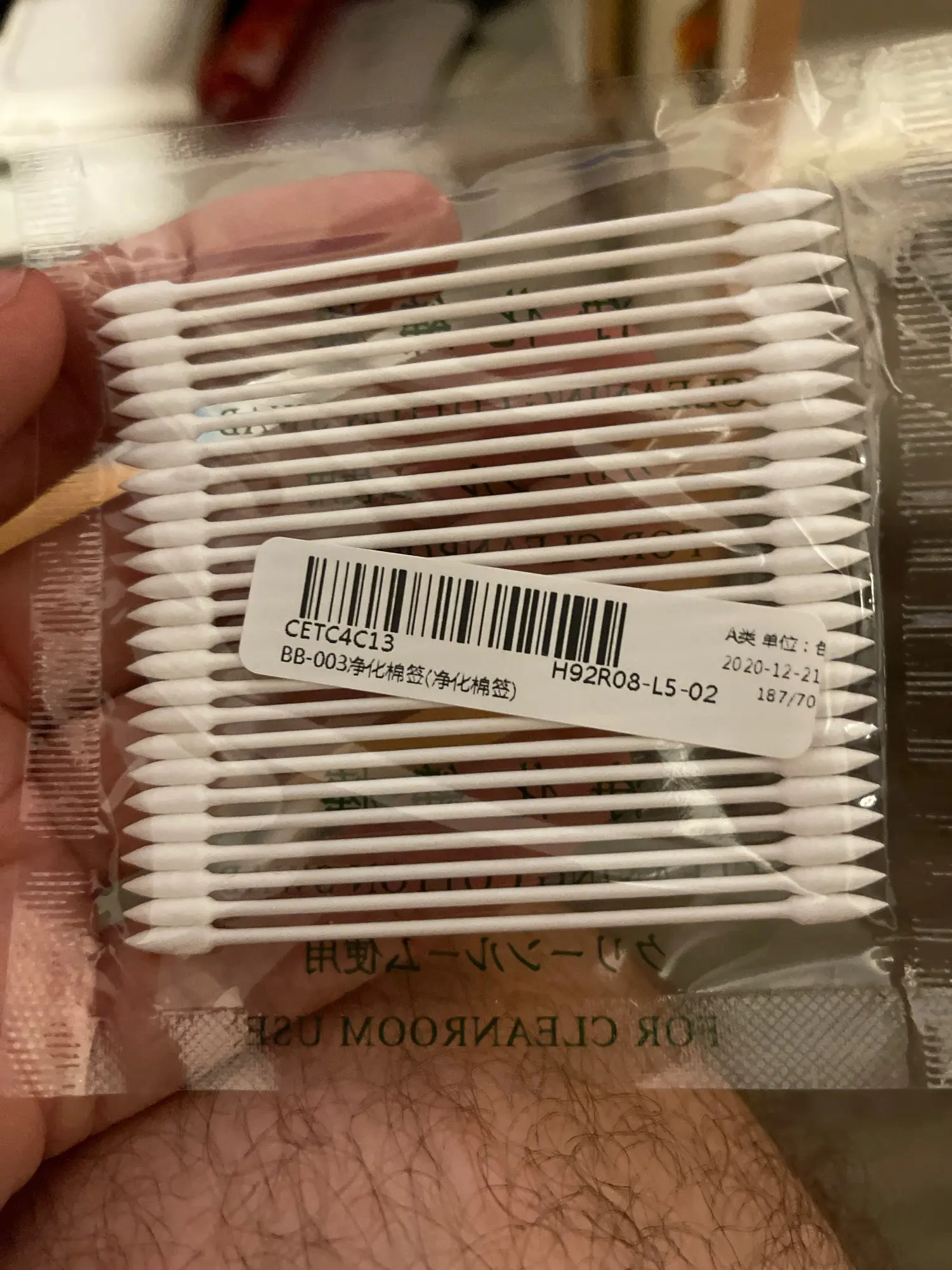 Пришли быстро, так как объединились с остальными посылками. Хорошие палочки для чистки динамика телефона, юсб/3.5 отверстий и прочих труднодоступных мест. Края заострённые и достаточно твёрдые чтобы не развалиться после первого же прикосновения. Единственное, что было странно, это мне пришли две не вскрытые упаковки, но в одной из них палочек было ощутимо меньше, а их недостачу просто докинули рядом. К счастью, на качество это не повлияло