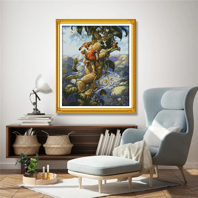 Сказка волшебных бобов картины Вышивка крестиком Печать холст DIY ручной работы вышивка наборы для рукоделия DMC хлопок нить ремесла