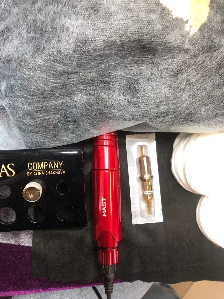 Машинка отличная! Правда, немножко поначалу было непривычно работать, так как она очень мягко вбивает пигмент в кожу. Я привыкла к более хлестким аппаратам. Особенно рекомендую ее новичкам в татуаже. С ее помощью сложно "засадить" татуаж!