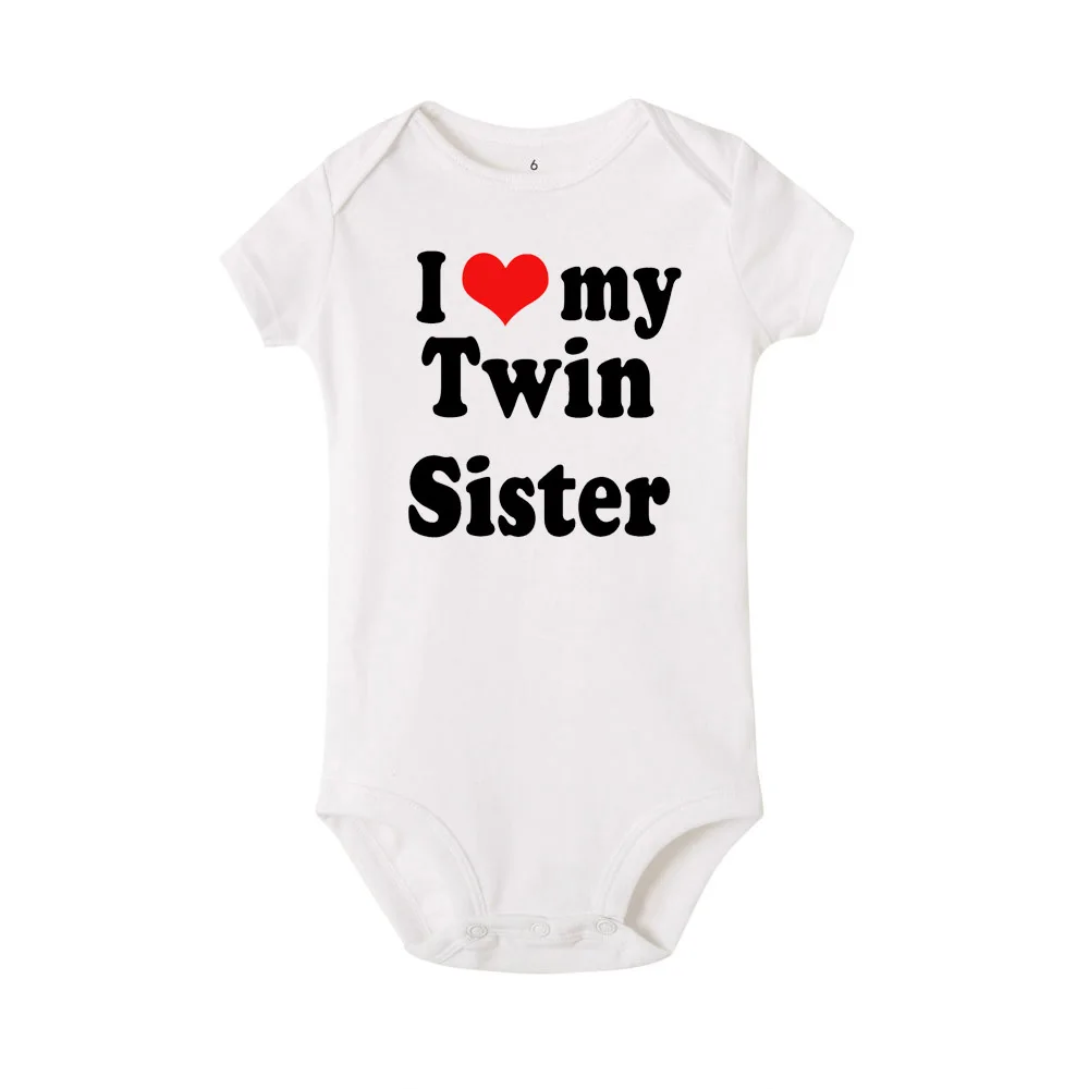 Забавные комбинезоны для новорожденных с надписью I Love My Twin Brother Sister, милый комбинезон с коротким рукавом для маленьких мальчиков и девочек, подходящая ко всему Одежда