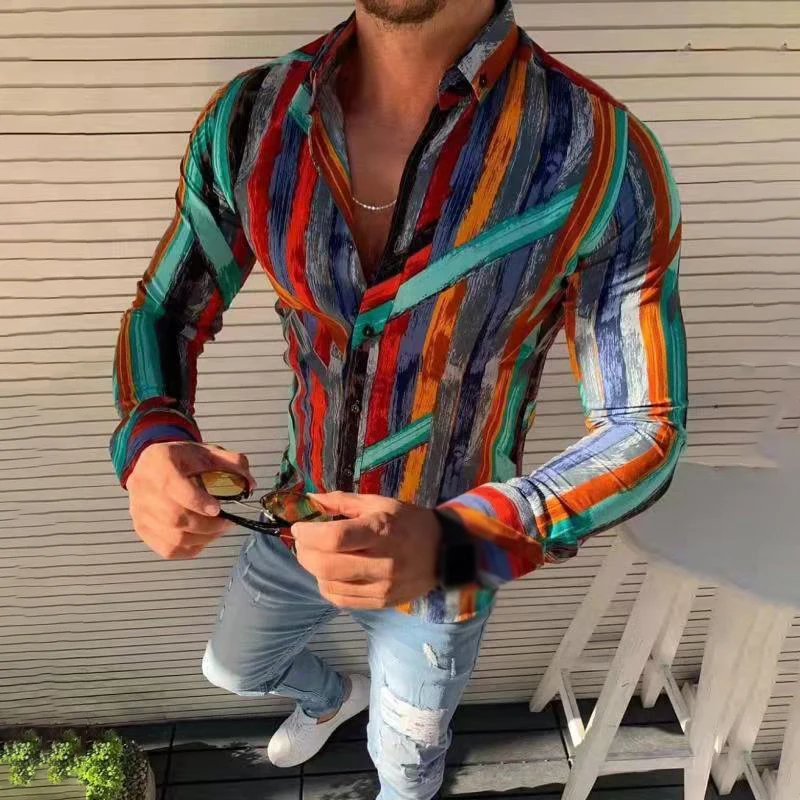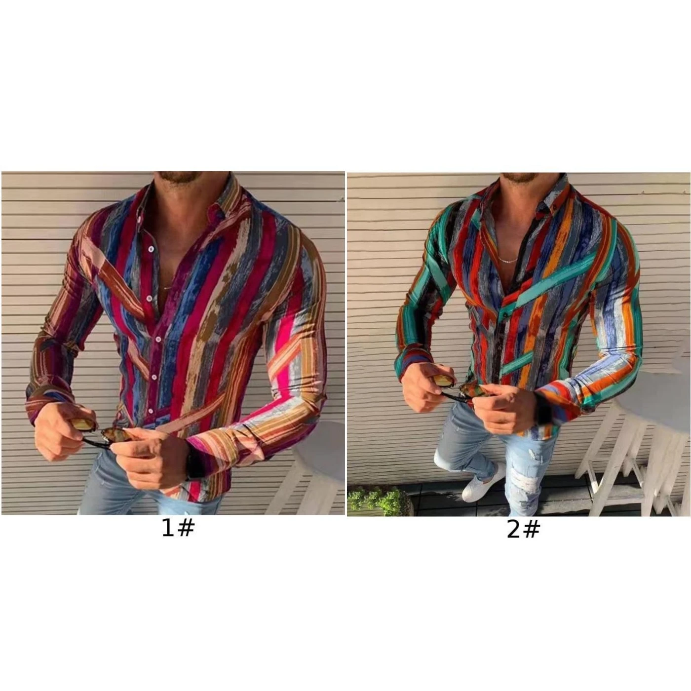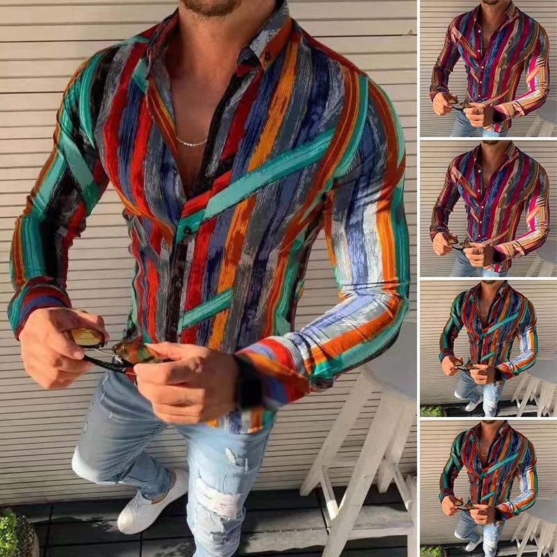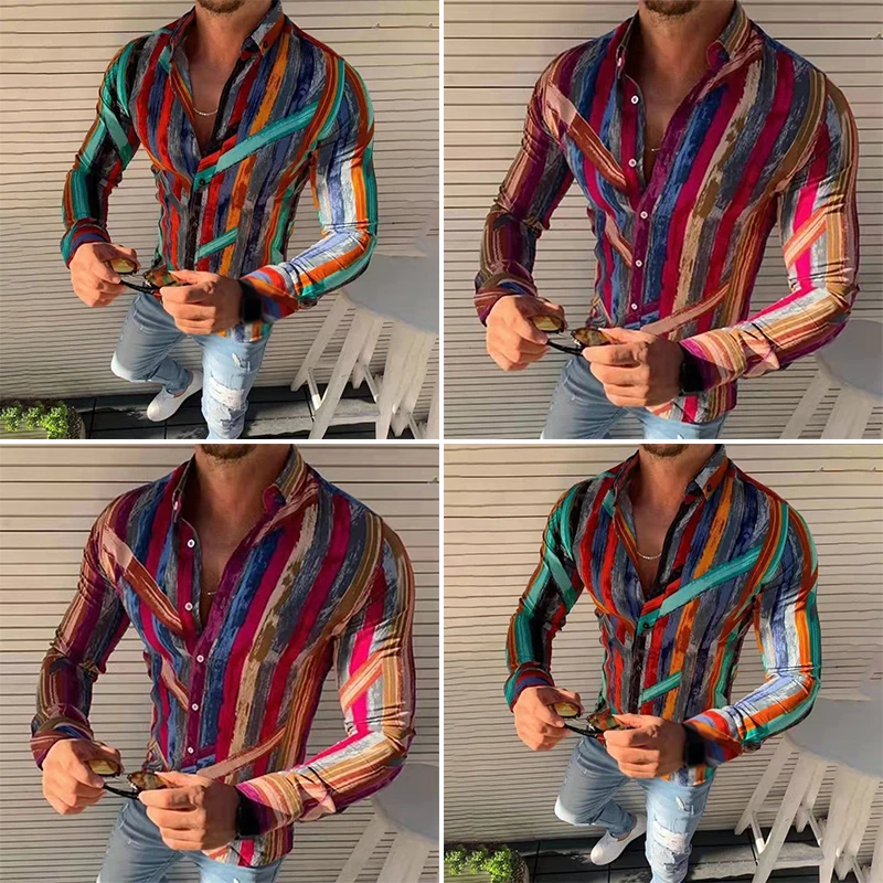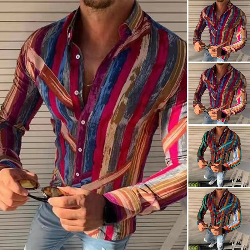 Мужская полосатая рубашка с отворотом, топы, рубашки с длинным рукавом, праздничные тонкие однобортные винтажные мужские топы