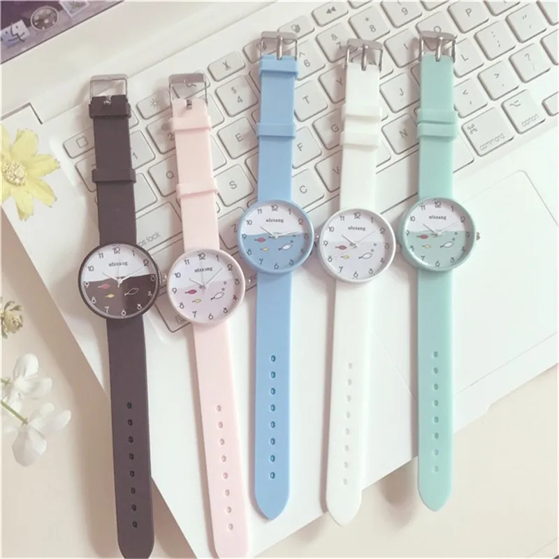 Роскошные детские часы, цветные силиконовые часы для девочек, модные кварцевые часы с маленькими рыбками, Детские часы с мультяшным рисунком