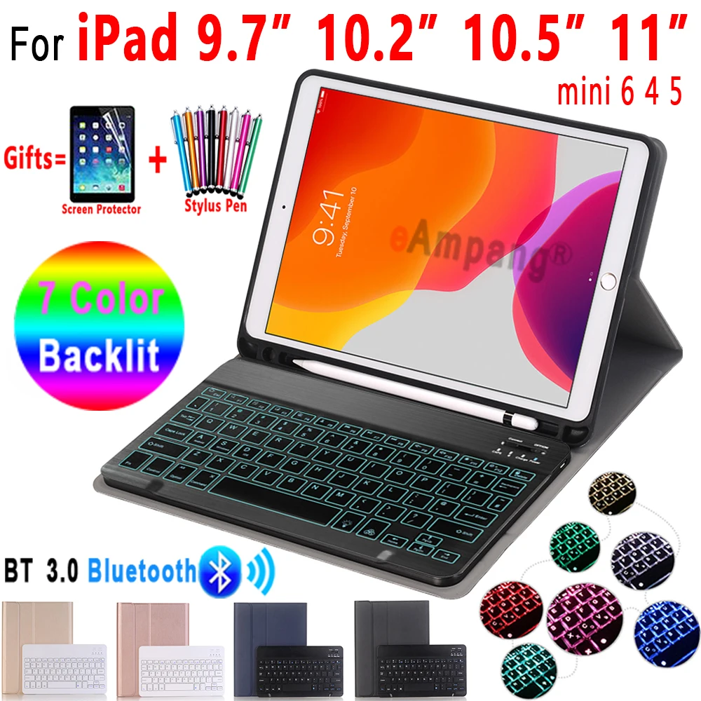 Чехол-клавиатура для iPad 10,2, чехол для iPad 5, 6, 7, 8 поколения, Air 2, 3 Pro 9,7, 10,5, 11 mini, 6, 5, 4, 3, 2, 1, с подсветкой