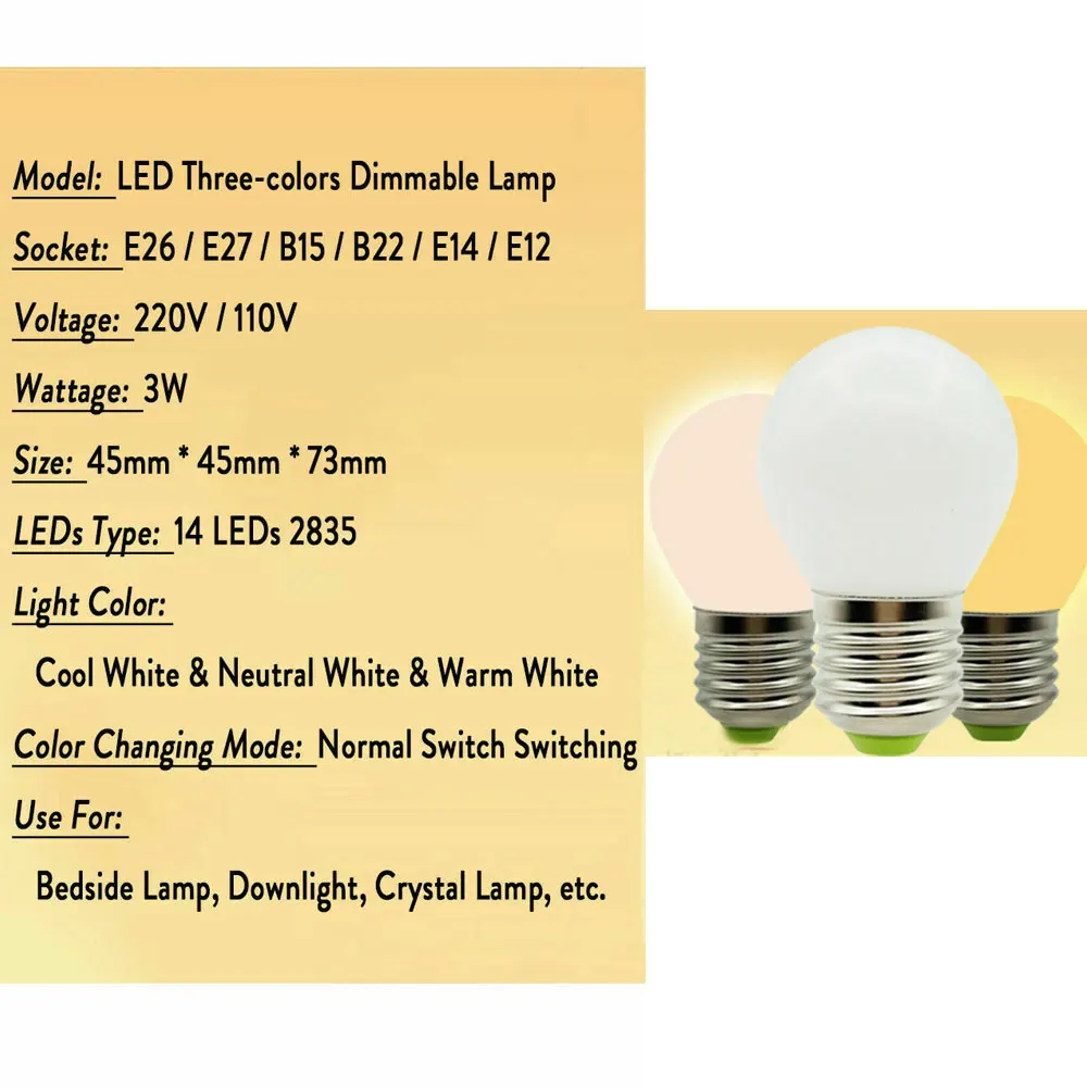 Светодиодная лампа 3 Вт, 10 шт.лот, E27, E14, E12, B22, B15, 3 цвета, заменяемая галогенная лампа 30 Вт для украшения дома, бара, вечеринки