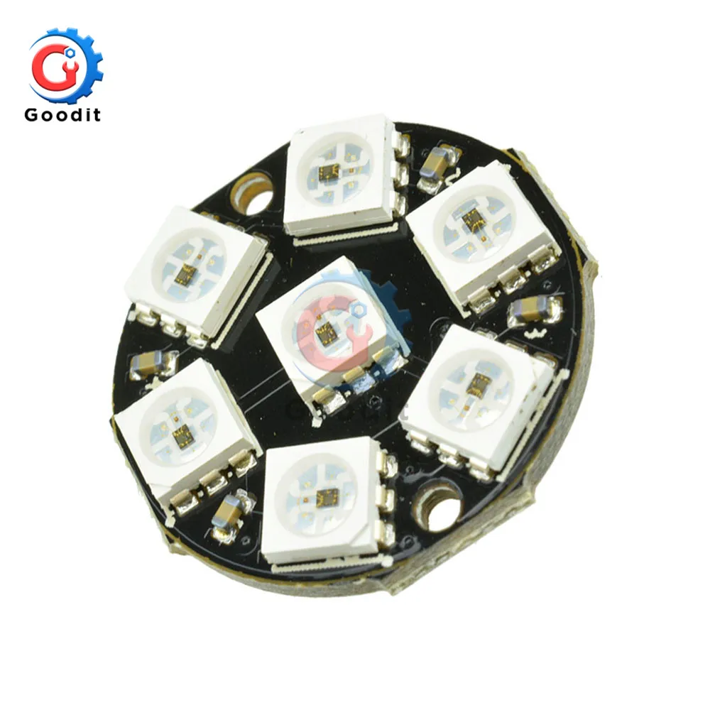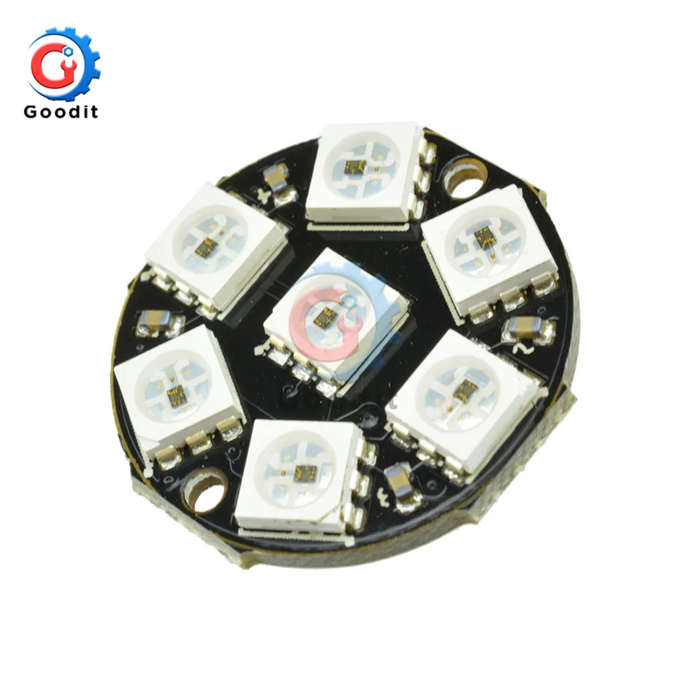 Кольцевая Светодиодная лампа WS2812, 7 бит, 5050 RGB, со встроенными драйверами для защиты от обратной полярности Arduino, IC-управление