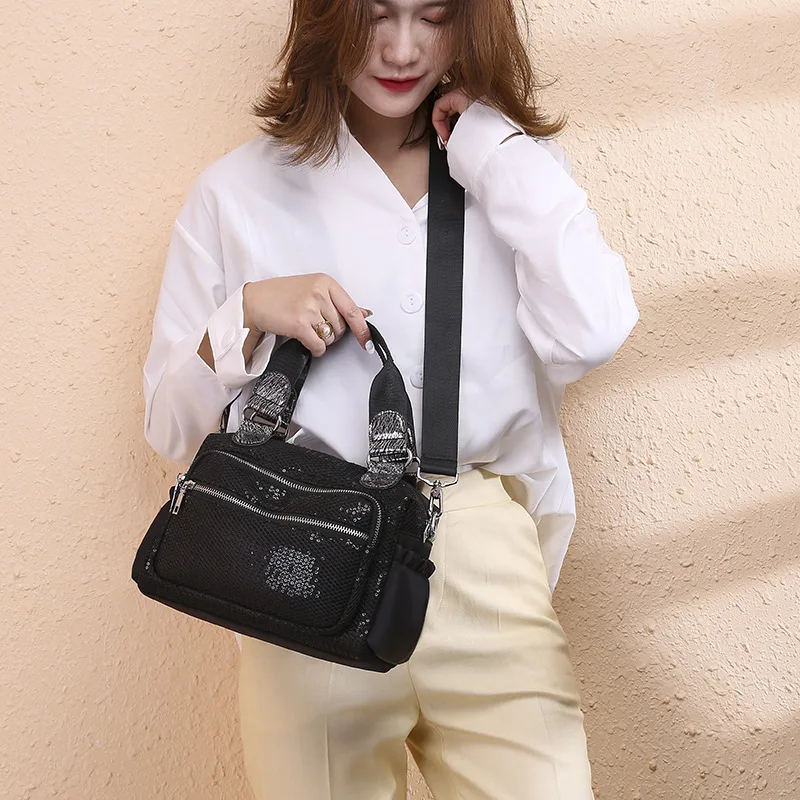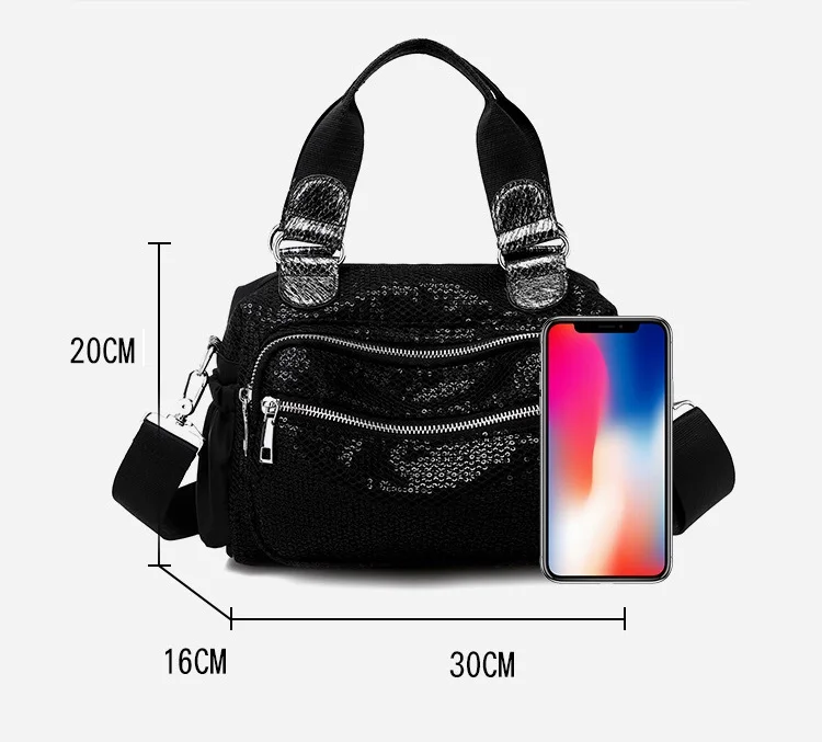 Женская сумка через плечо, из ткани Оксфорд, с блестками