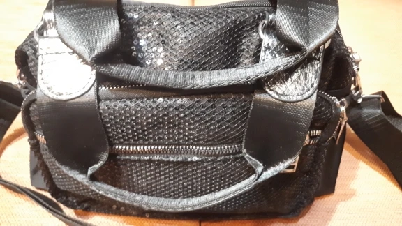 Сумочка очень качественная ,размер с карманчиками 29 ×17 см,между тканью верха и подкладом есть прокладка ,и сумочка поэтому плотная, держит форму,пайетки только с лицевой стороны ,доставка1,5 месяца ,если бы не почта России была бы в два раза быстрее.Сумка очень понравилась.