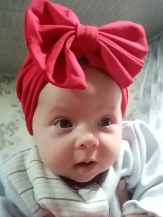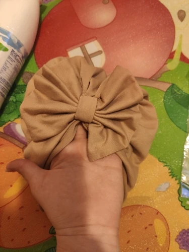 качественная шапочка, ткань приятная и лёгкая хорошо тянется. ребенку 3 мес - великовата, но сейчас зима. весной и летом уже будем носить , закрывает ушкив машинке постирала, бант остался цел тянется хорошо, но мне маловата, ребенку хватит надолго, спасибо