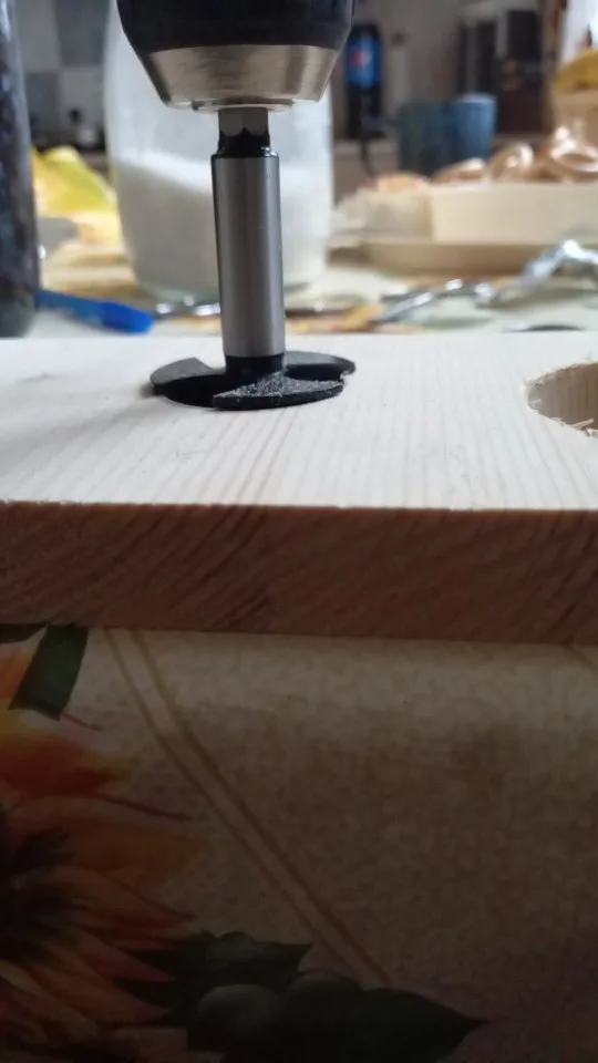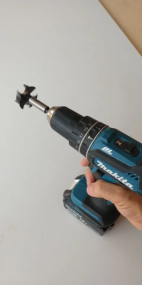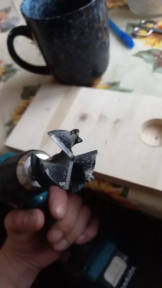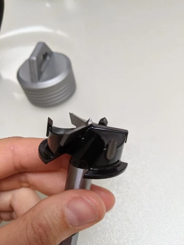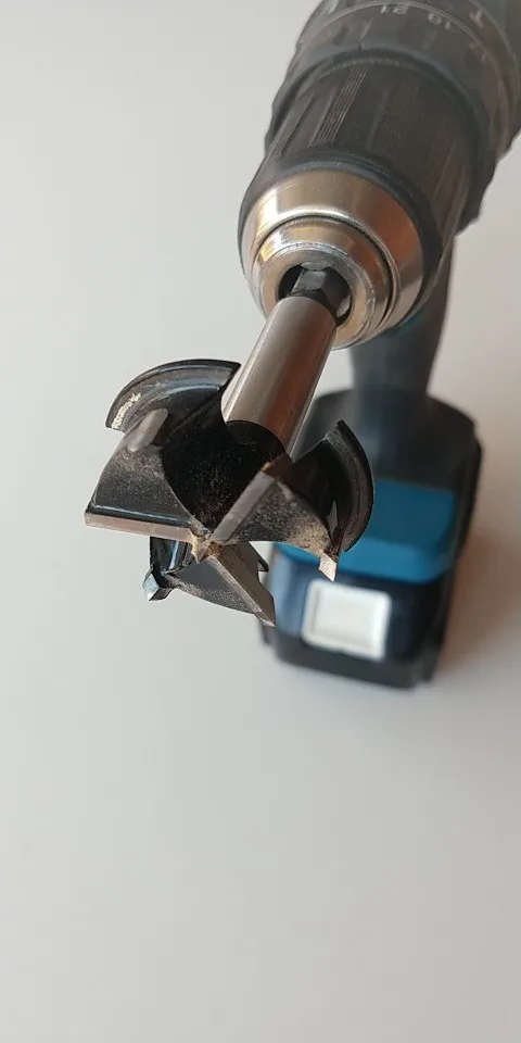 Пришло за 2 недели. Сверлит очень хорошо, как в масло ножом. Но центральный шип великоват. При сверлении в 16мм панель надо быть аккуратным. Может и надколоть. Для присадки в 18мм фасады просто здорово.