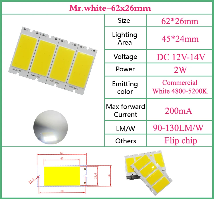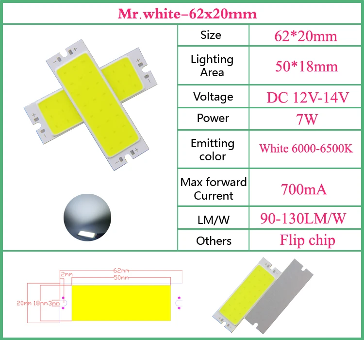 Применение: автомобильные лампы, домашние фонари, рабочие лампы, аварийные огни, декоративные огни, внутренние DIY COB светодиодный свет...