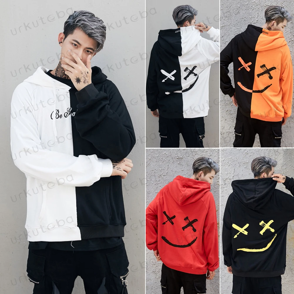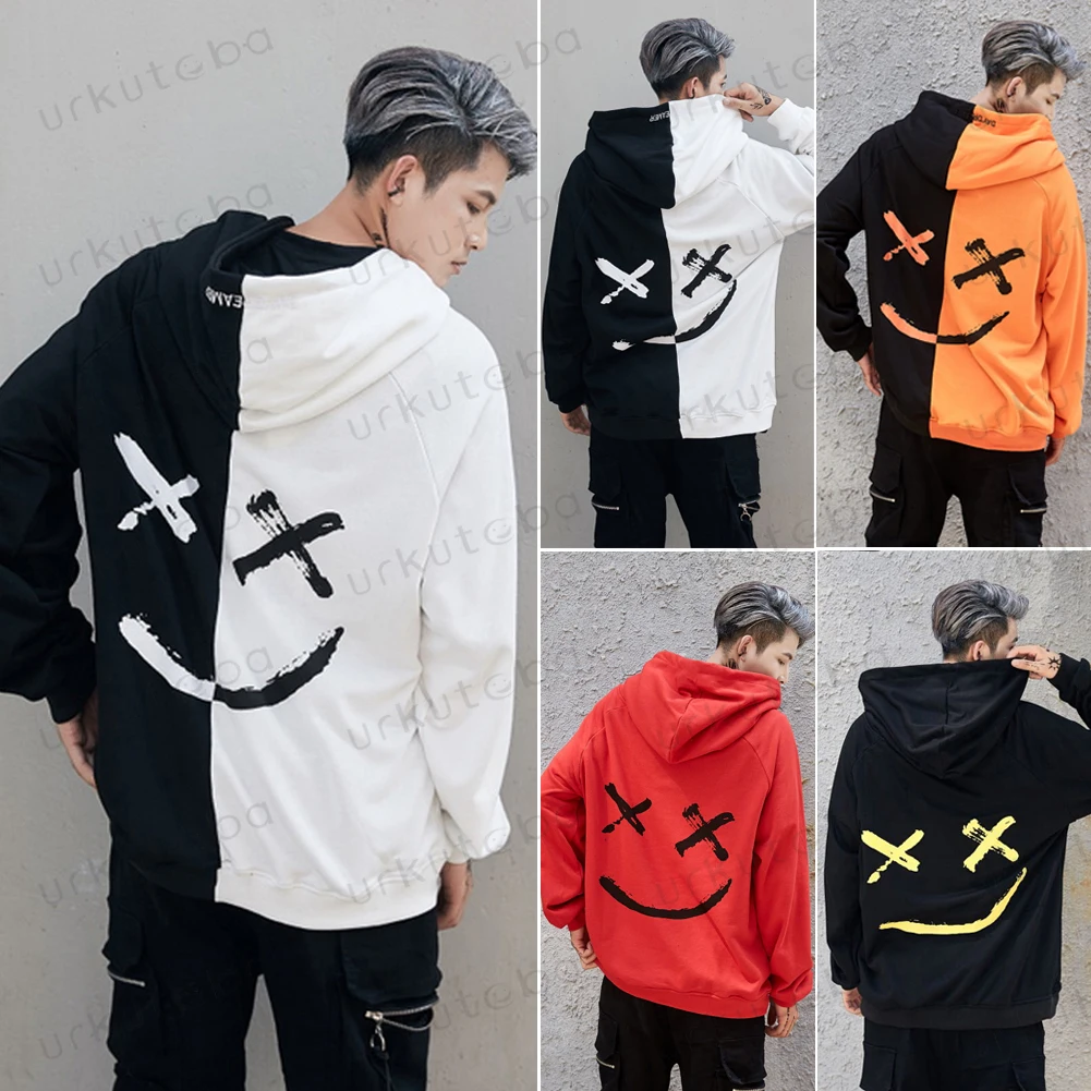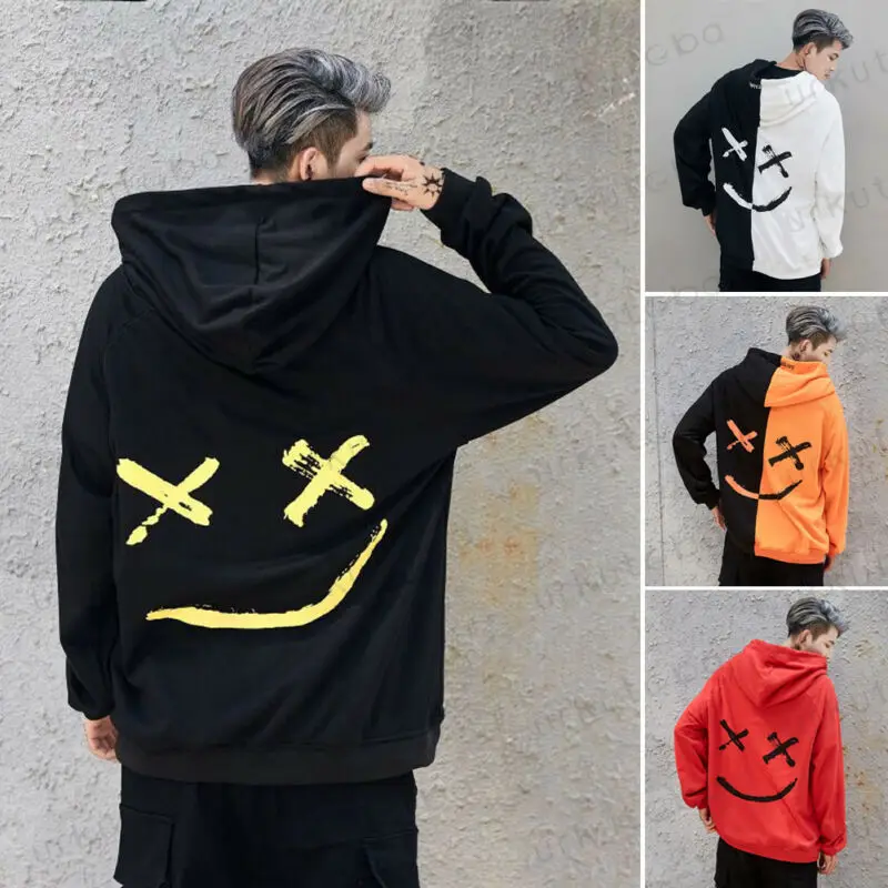Мужские толстовки, свитшоты счастливый улыбающийся принт лица мужские лоскутные толстовки с капюшоном длинным рукавом Пуловеры Джемперы и толстовки