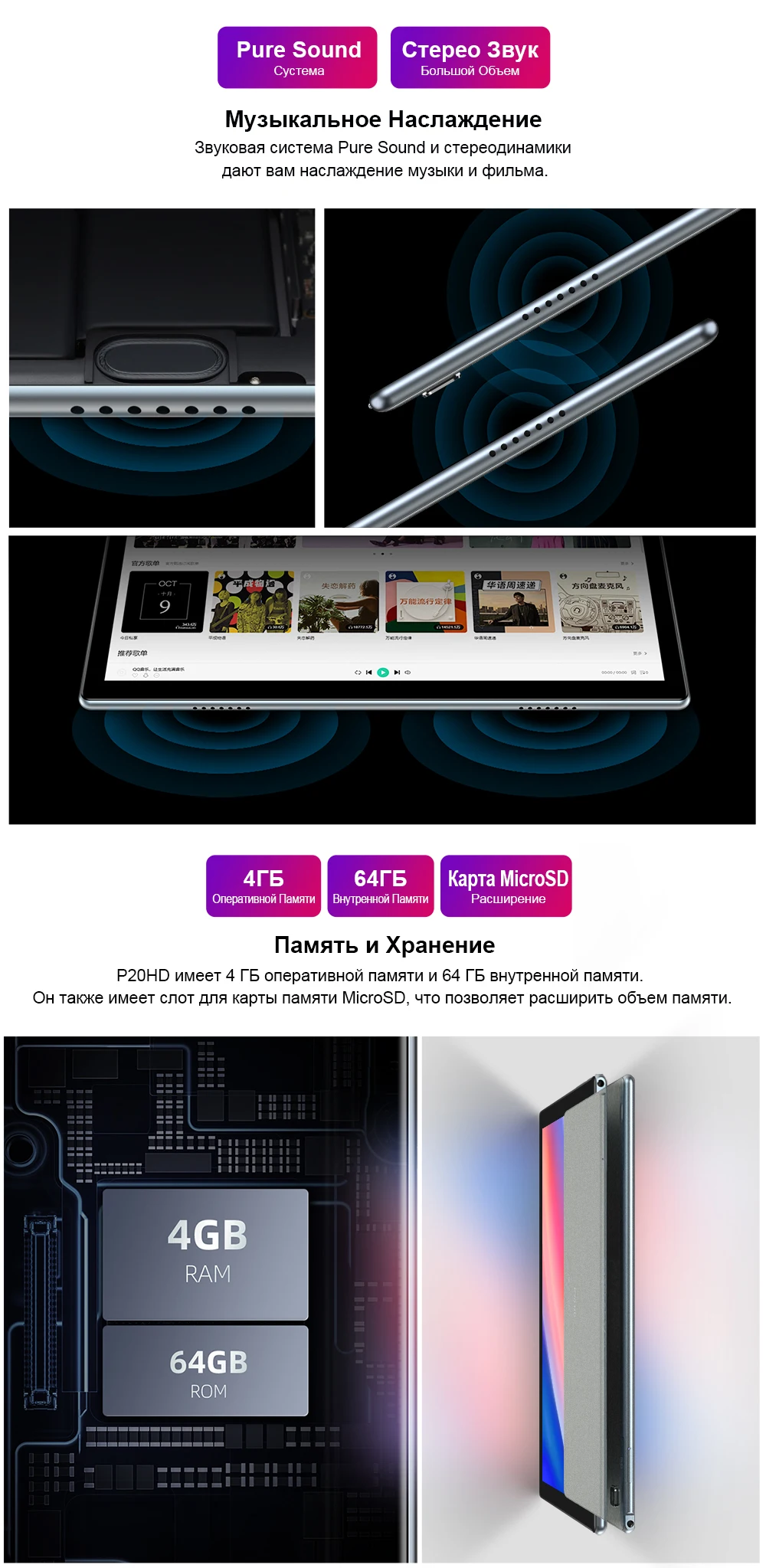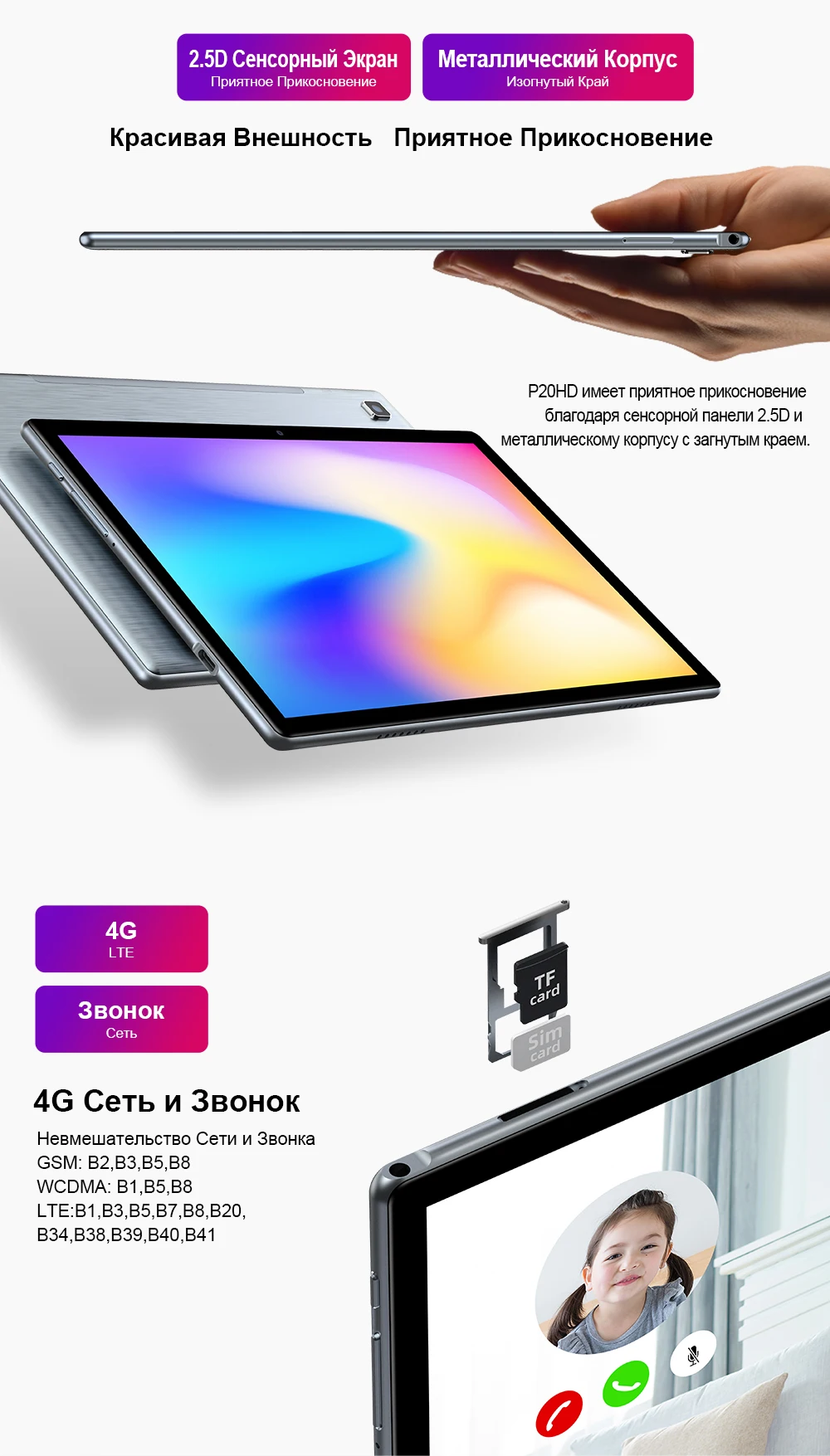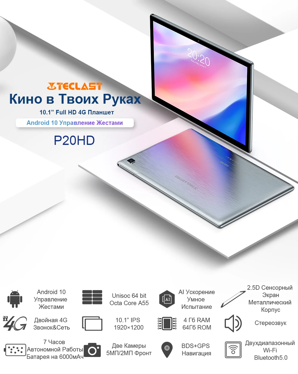 Планшет Teclast P20HD 10,1 дюйма, Android 10, 1920x1200, SC9863A, 8 ядер, 4 ГБ ОЗУ, 64 ГБ ПЗУ, сеть 4G, планшеты с ускорением AI, ПК, двойной Wi-Fi