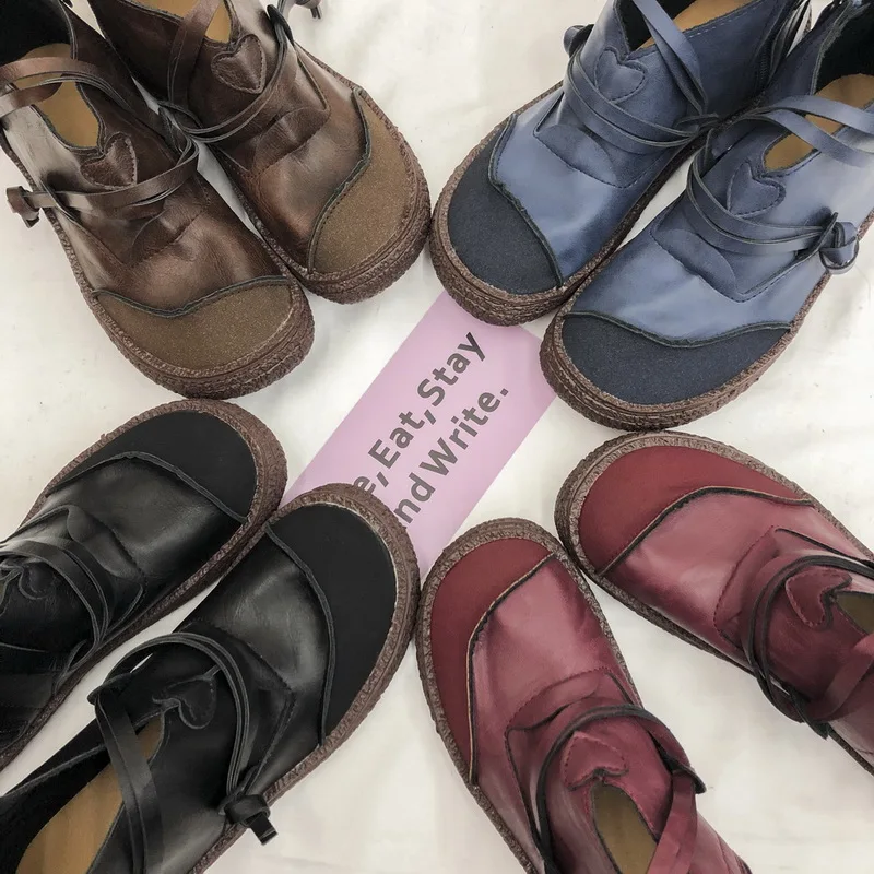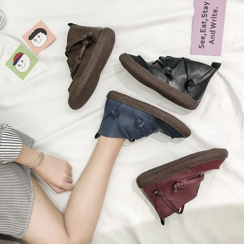 Ботинки женские со шнуровкой и цветами, в японском стиле Харадзюку