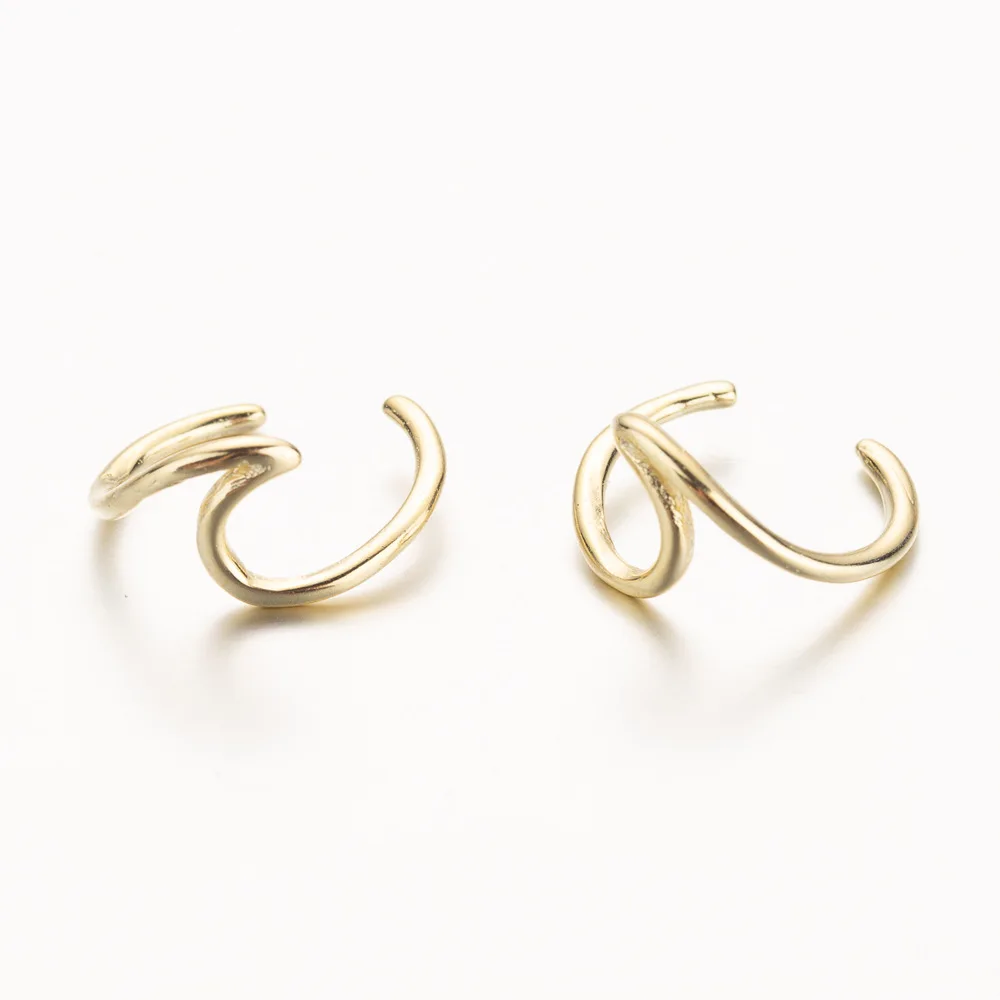 Серебряные волнистые серьги-гвоздики с клипсой для ушей для женщин, каффы для ушей, чешские милые серьги для пирсинга
