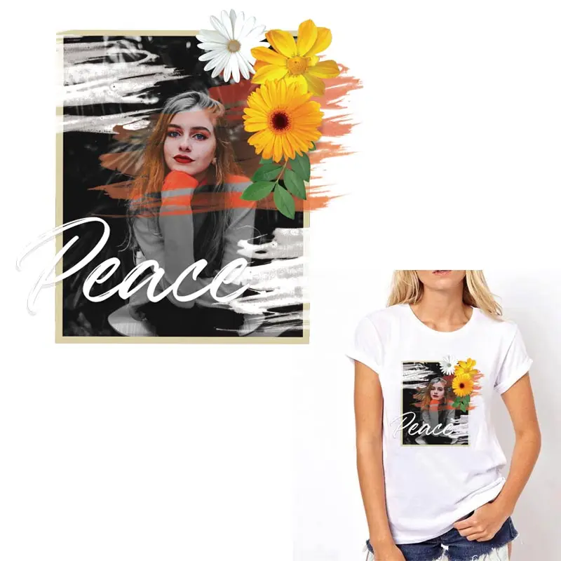 Новая мода аппликация на одежду цветок DIY моющаяся Девушка Футболк...
