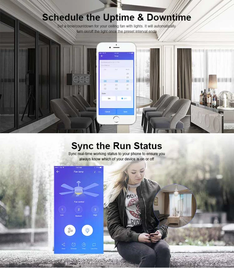 Вентилятор Потолочный SONOFF IFan03 с Wi-Fi и выключателем света, 433 МГц