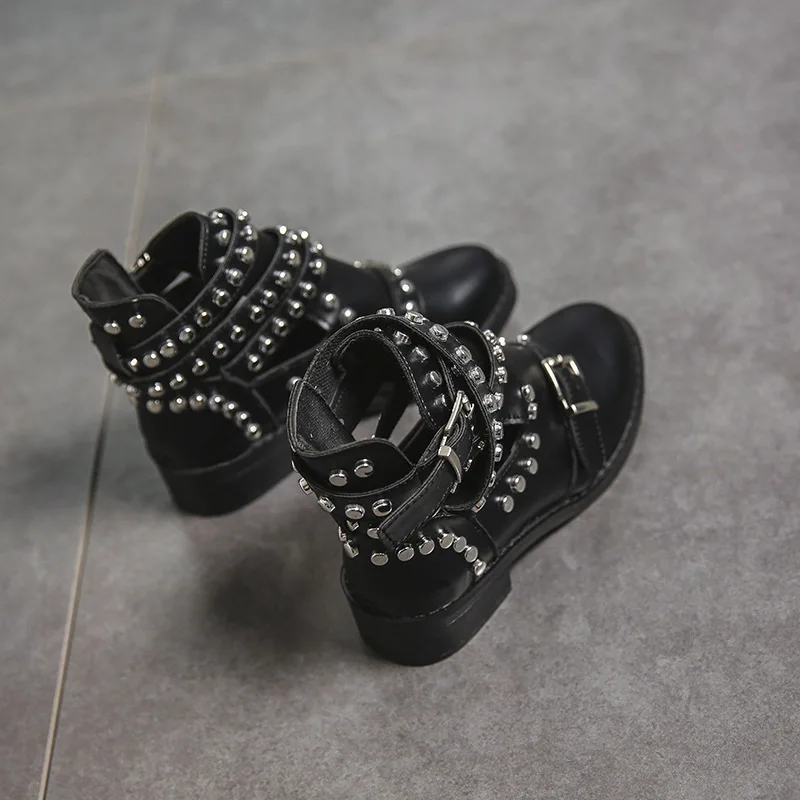 Женские ботинки с заклепками Lucyever, черные однотонные мотоциклет...