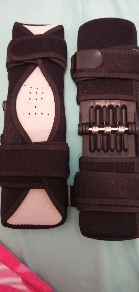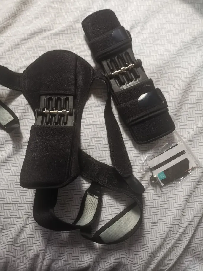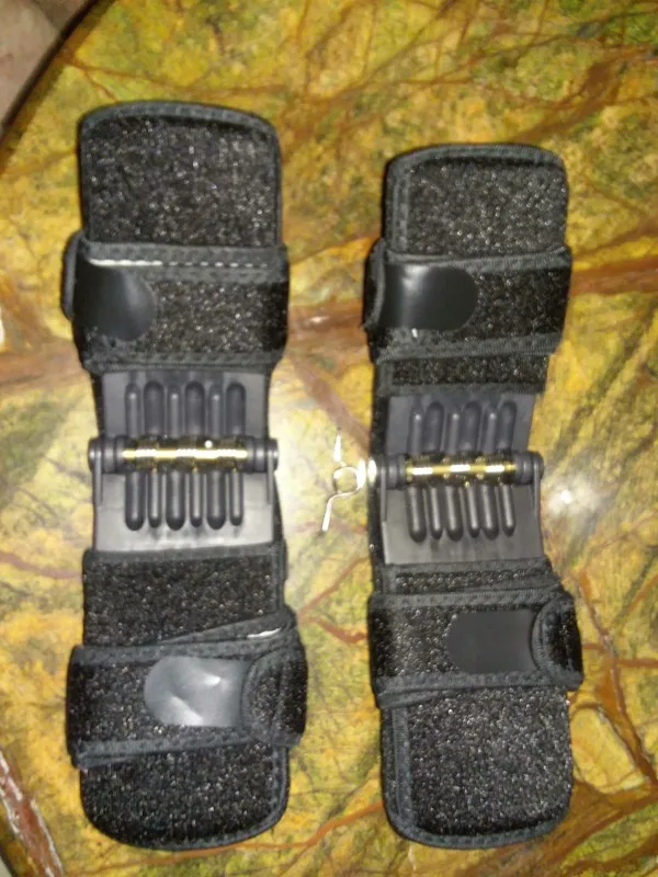 Заказала в коробке, коробка пришла ужасно мятая, лучше бы заказала в пакете. На картинке более добротные, чем приехали. Качество среднее, я не в восторге(. Есть запасные пружины. Свою функцию исполняют, сустав реально разгружается. Сколько прослужат не известно. С продавцом не общалась. Доставка до СПб за две недели.
