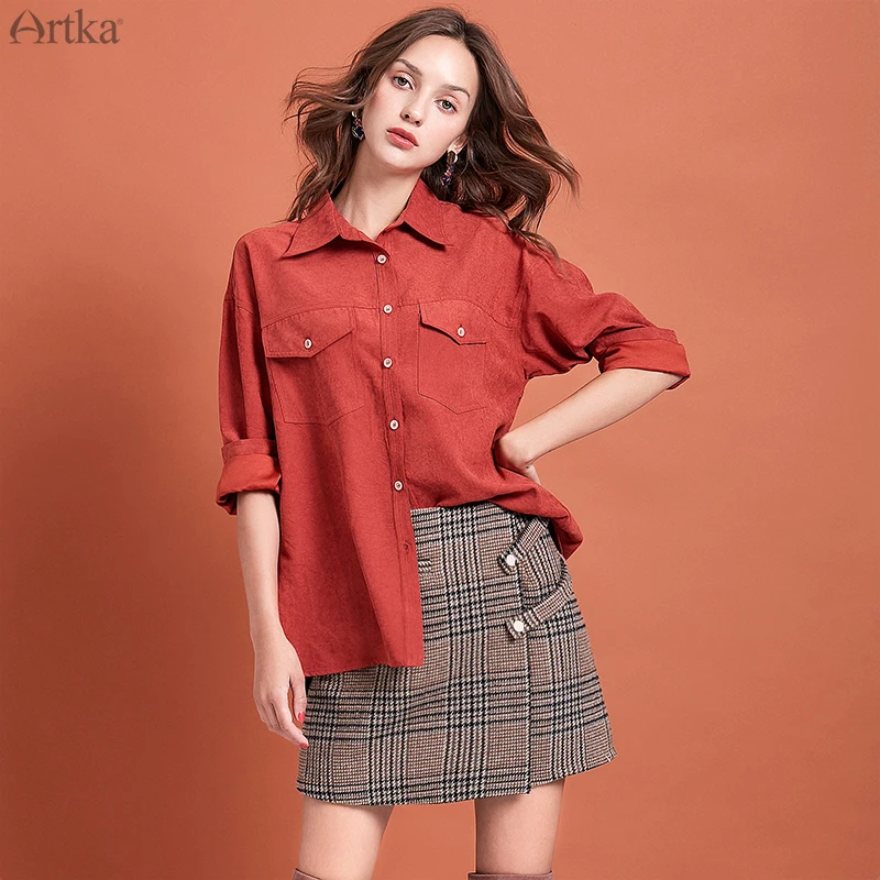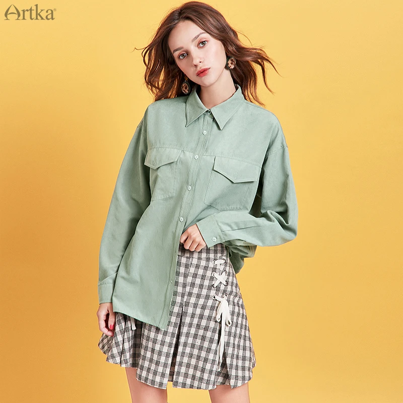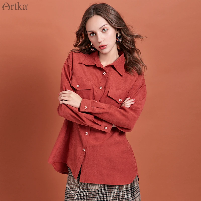 Женская рубашка с отложным воротником ARTKA, однотонная Свободная Повседневная Блузка с длинным рукавом, весна 2020
