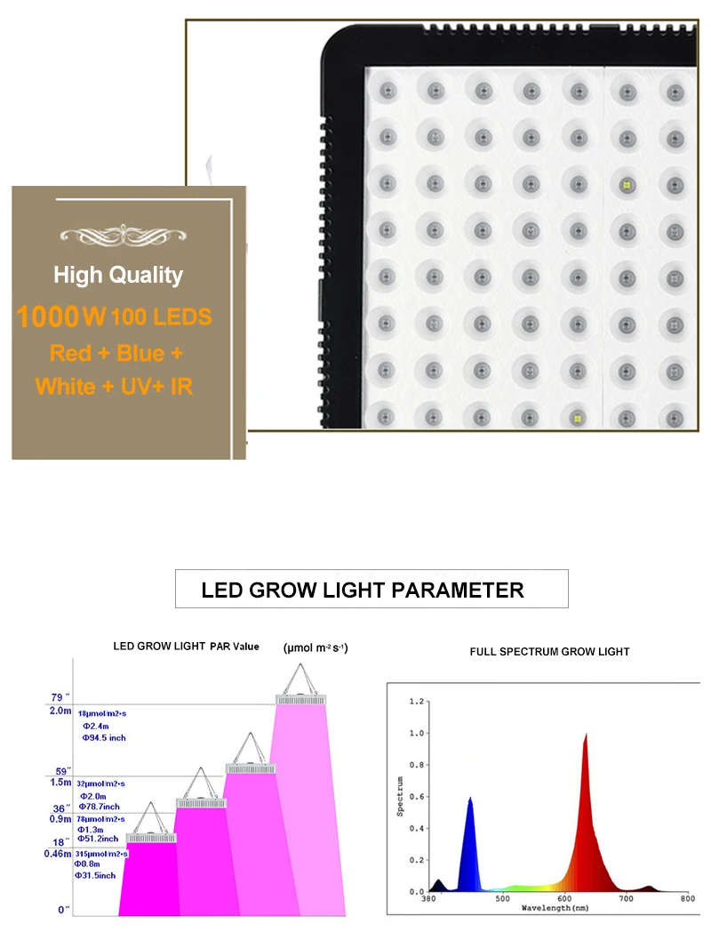 Светодиодный толампа, светодиодная комнатная лампа полного спектра для выращивания растений, 1000 Вт