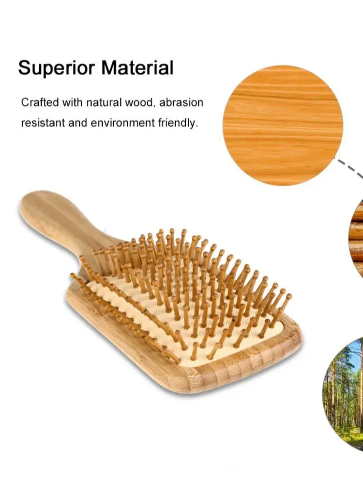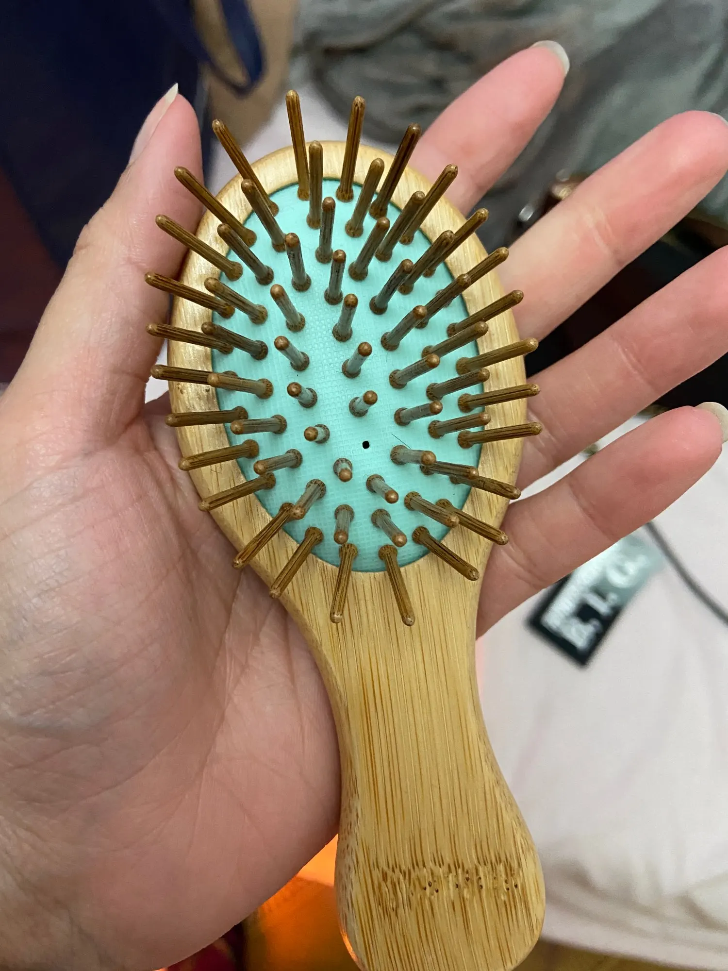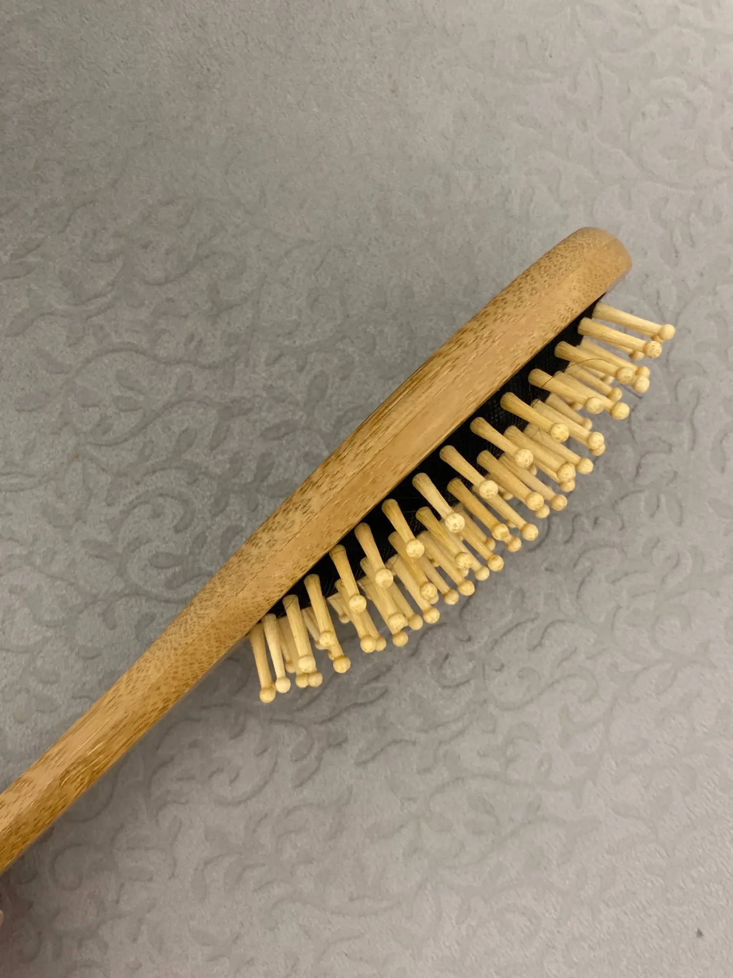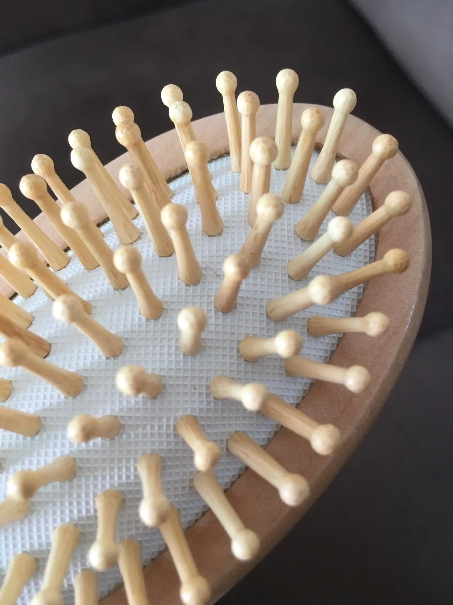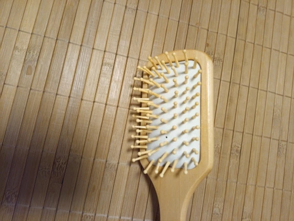 Он прибыл менее чем за две недели и указан в сообщении. Деревянная/бамбуковая расческа, даже шипы деревянные, я думал, что они будут пластиковыми, но они тоже деревянные, или, по крайней мере, это то, что выглядит. Хорошие покупки.