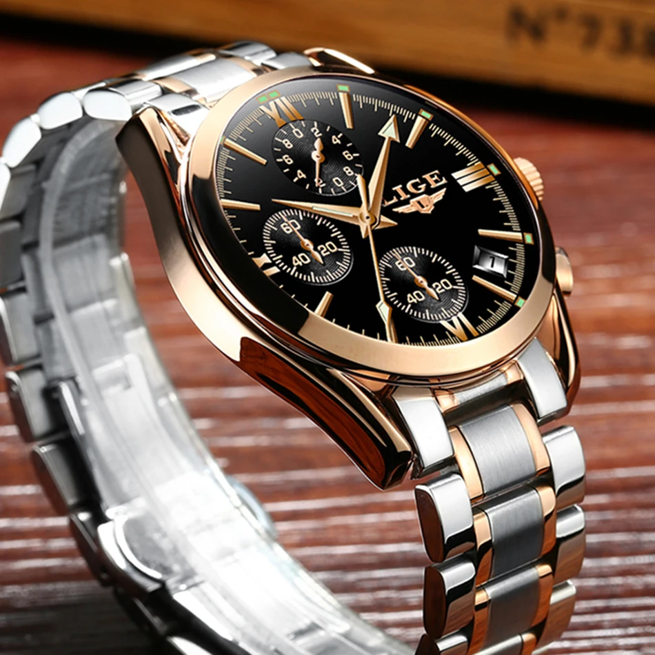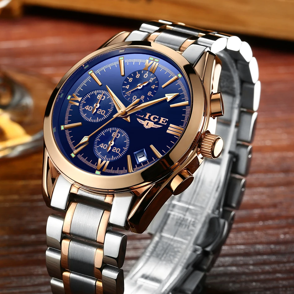 Часы LIGE Мужские кварцевые, брендовые Роскошные модные деловые вод...