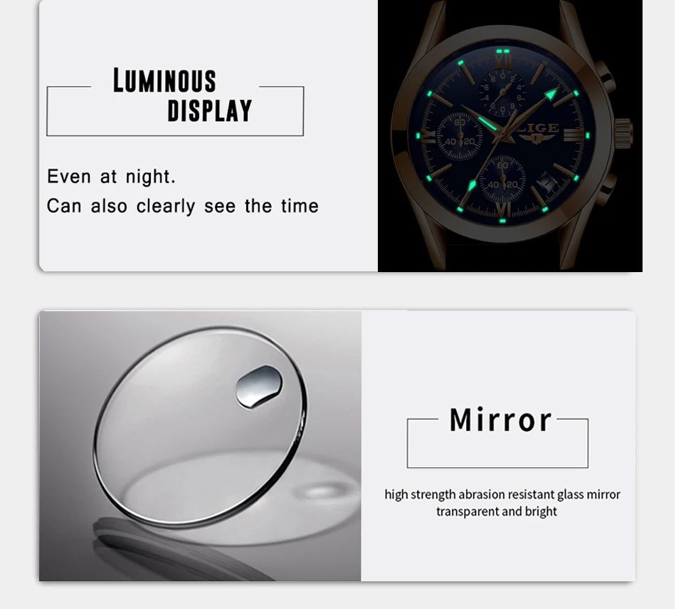 Часы наручные LIGE Мужские кварцевые с кожаным ремешком, модные спортивные брендовые Роскошные водонепроницаемые деловые с коробкой