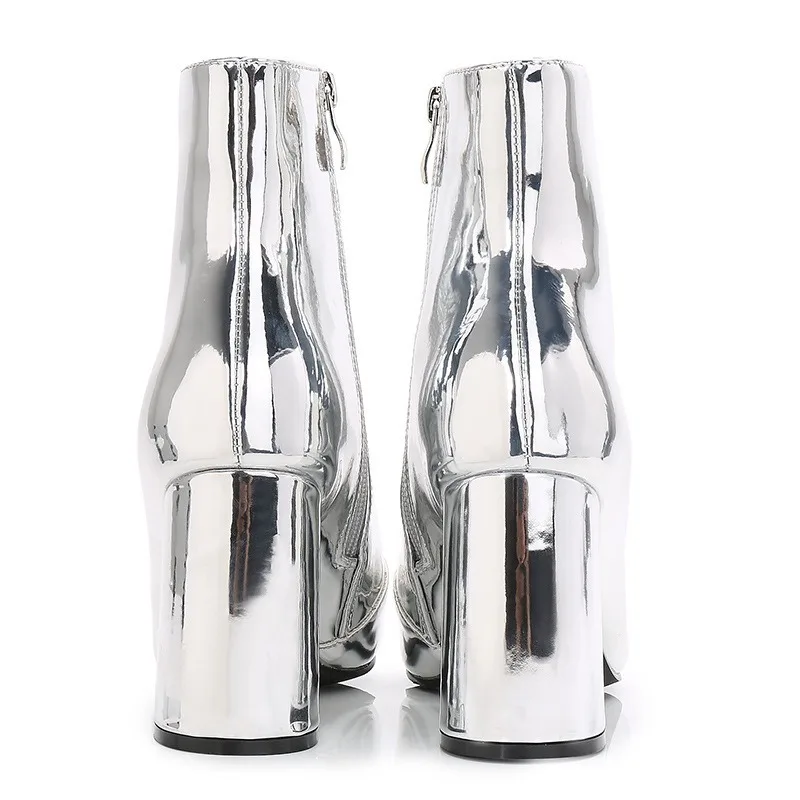Роскошные Дизайнерские Модные Серебристые золотистые кожаные ботильоны пикантные женские осенние ботинки на массивном высоком каблуке женские туфли-лодочки с острым носком