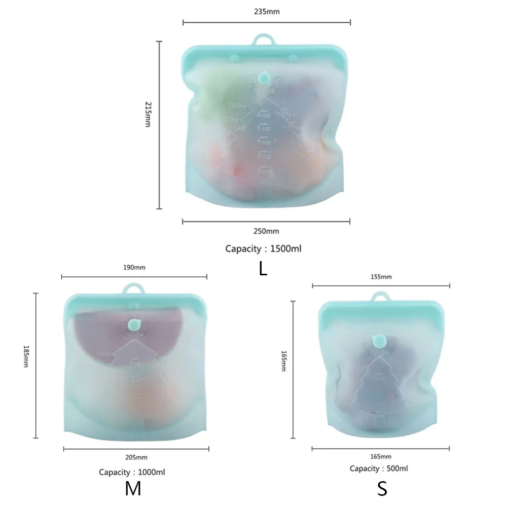Силиконовый Пакет для пищевых продуктов, многоразовый пакет для закусок с застежкой-молнией, герметичный Кухонный Контейнер для хранения овощей, фруктов