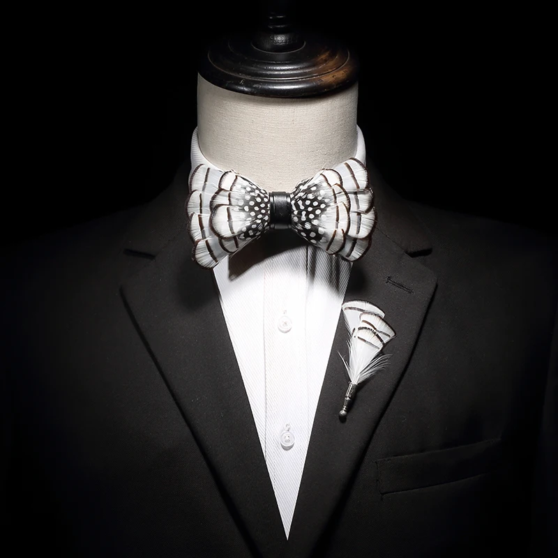 Мужской галстук-бабочка с перьями jemygin, черный и белый цветочный галстук-бабочка ручной работы для свадьбы, вечеринки, выпускного вечера, подарочный набор