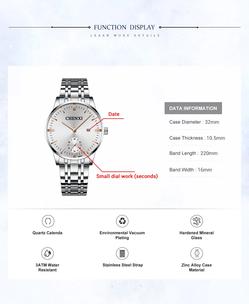 2022 платье бизнес Женские часы CHENXI Топ Бренд роскошные женские модные повседневные водонепроницаемые часы кварцевые наручные часы с календарем